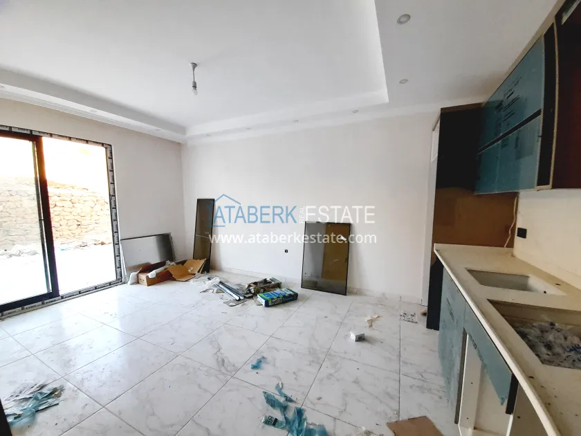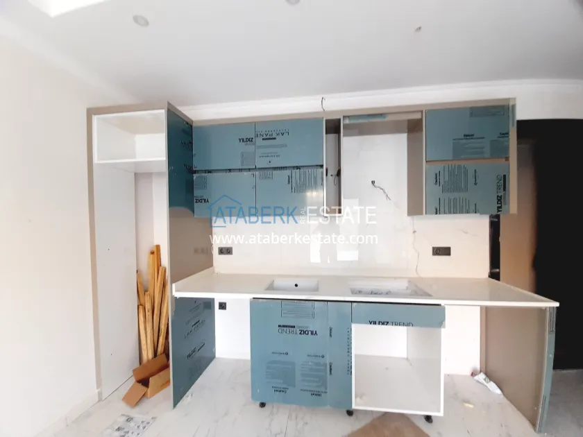 The proposed 1+1 property with an area of 51 m² also includes a private area. It is located on the first floor. This layout offers a living room, an open-plan kitchen, a bedroom, a combined bathroom and an outdoor terrace. The price of the apartment includes full finishing, built-in kitchen furniture and a fully equipped bathroom.
