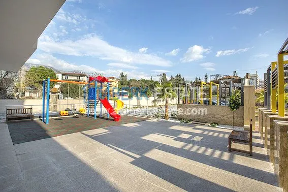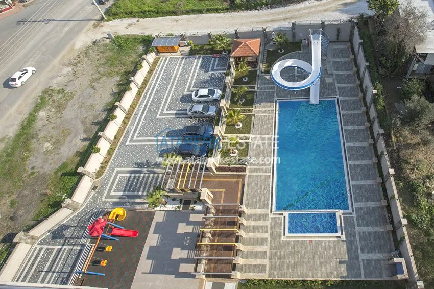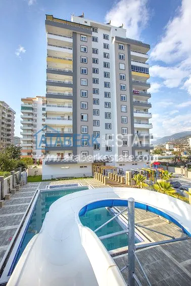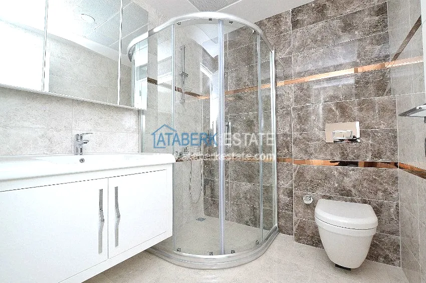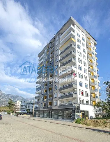The apartment is located on the 9th floor and consists of a lounge with an American kitchen area, a bedroom, a bathroom with a shower, a large balcony overlooking the Mediterranean Sea and the Toros Mountains. The apartment is sold with a fine finish, as in the photo. The apartment faces south, so there will always be sunny and bright.