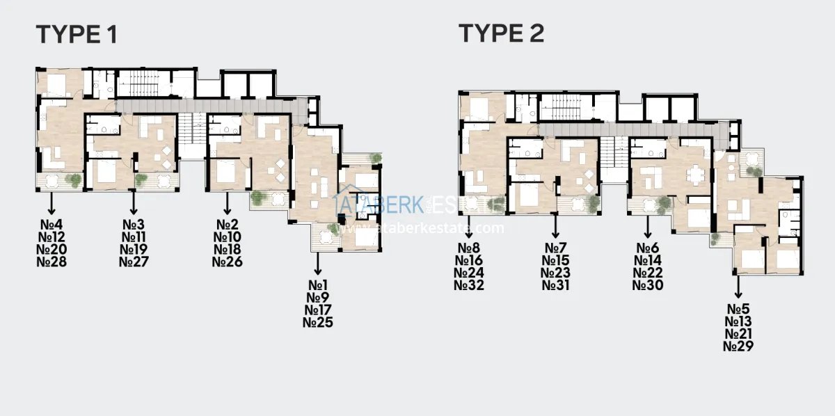 The comfort-class complex consists of one block with a closed area and only 36 apartments. There are four apartments on each floor: three 1+1 layouts (58 m2 net area) and one 2+1 (71 m2). At the top of the building, there are spacious 2+1 and 3+1 duplexes with panoramic terraces. All apartments have sea views.