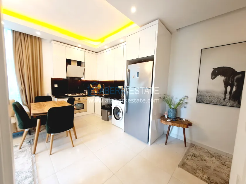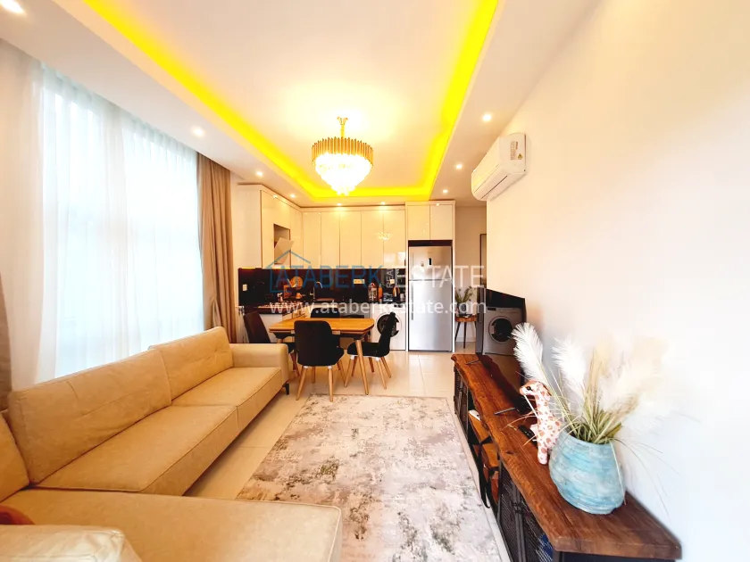The proposed apartment with a total area of 55 m2, the first floor is high, well-thought-out layout: a living room with an open-plan kitchen, a separate bedroom, a combined bathroom and a balcony with a beautiful view of the green garden of the complex. This creates a sense of privacy, peace and complete privacy — an ideal solution for those who value peace and comfort. The apartments also have a rare, 1+1, full-fledged corridor. The property is fully ready for occupancy - stylish furniture, modern interior, necessary household appliances.
