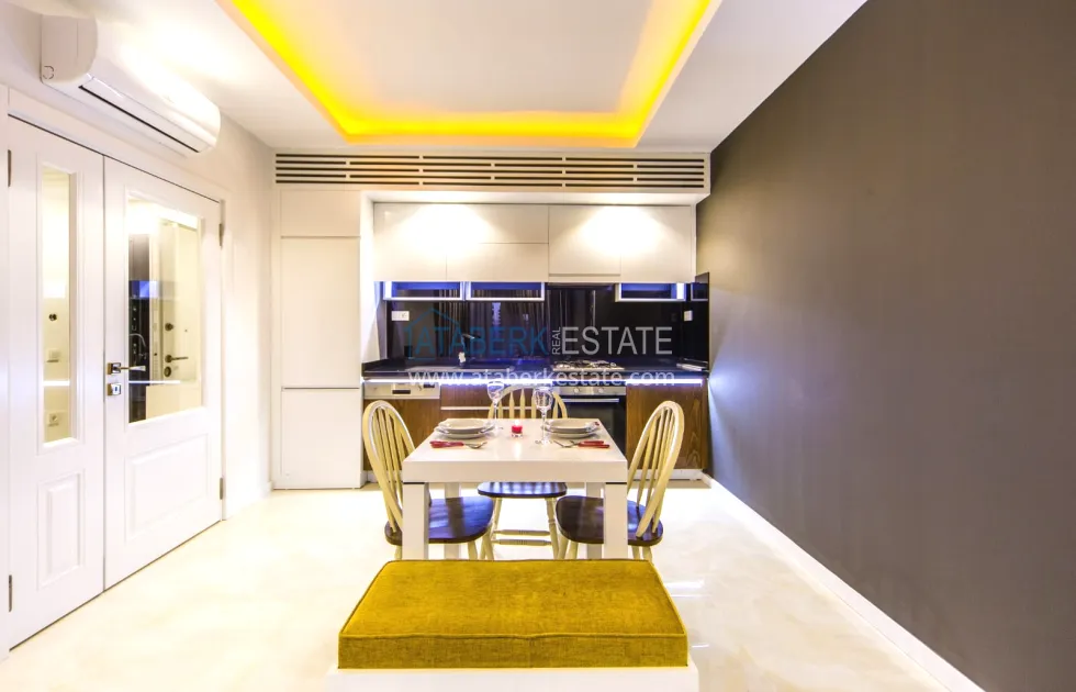 The residential complex is a well-maintained residence with a closed guarded territory and self-sufficient infrastructure designed for comfortable year-round living. Aidat is 1250 liras per month. It consists of one 12-storey block and is located on a quiet street, away from noisy highways, but only 6 minutes walk from the sea. In the immediate vicinity there are grocery stores, pharmacies, cafes, restaurants and public transportation stops.