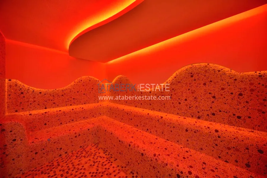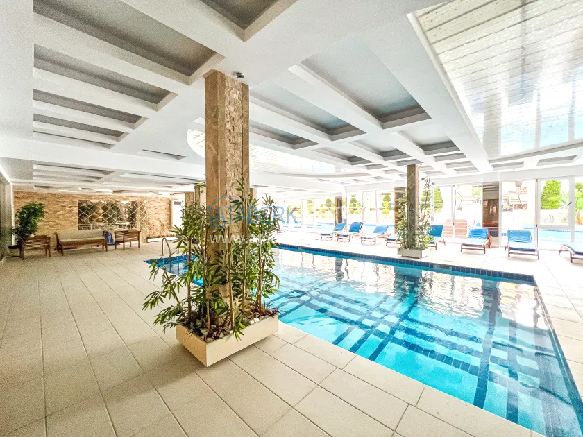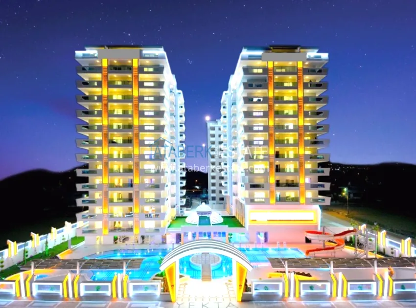 This residential complex can be called one of the best in the area. It consists of two blocks and a closed landscaped area. It combines developed infrastructure, high quality construction, convenient location and professional management. Aydat is 2,100 lira per month. It is within walking distance of everything you may need for a comfortable stay or year-round living. The sea is 400 meters away, about a 5-minute walk away.