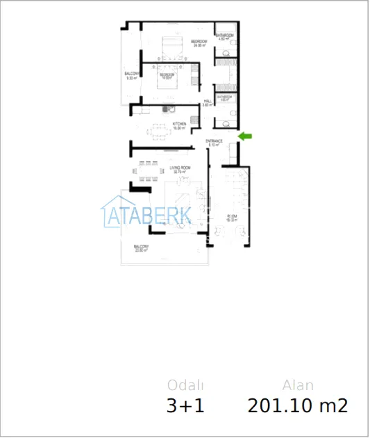 The apartment is located on the 2nd floor. Important: the social areas of the complex are located under the apartment, so the actual height above the courtyard level is felt greater than that of a typical second floor — additional privacy and less pedestrian traffic at the windows. Layout 3+1 with an area of 201 m2 - a spacious living room, a separate kitchen (closed type), three separate bedrooms, two bathrooms and two balconies.