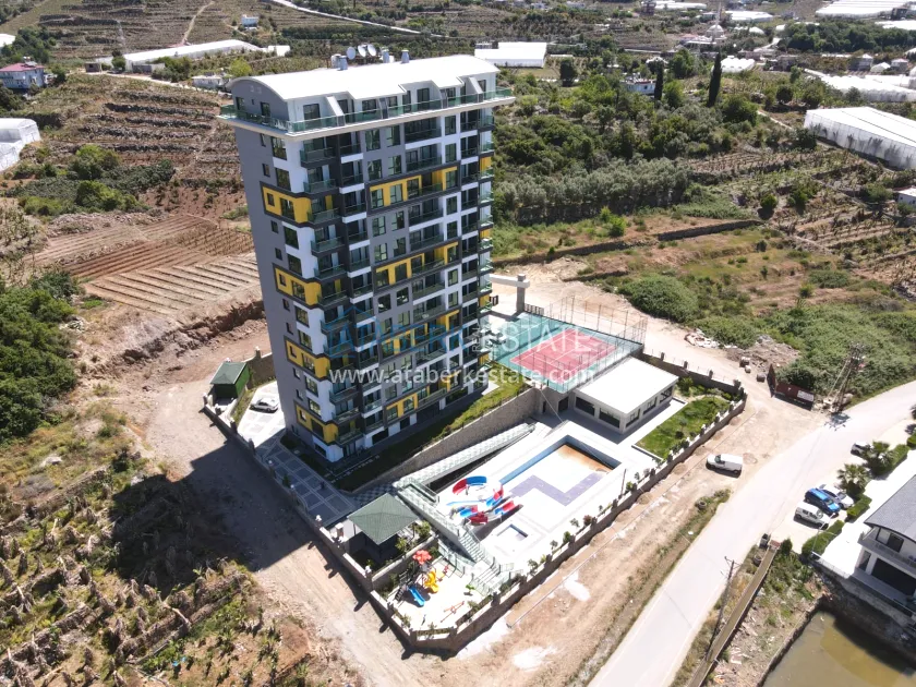 This modern residential complex is located on a quiet street in Mahmutlar, just 650 meters from the Mediterranean coast. The closed, well-groomed area and internal infrastructure create comfortable living conditions all year round. Shops, cafes, pharmacies and transport stops are within walking distance — everything you need is nearby.