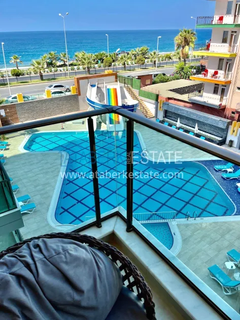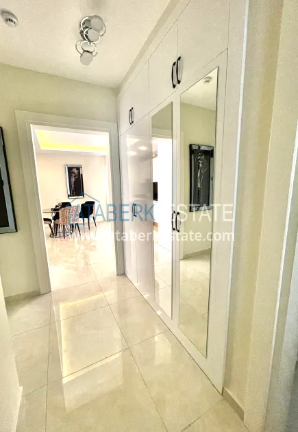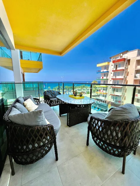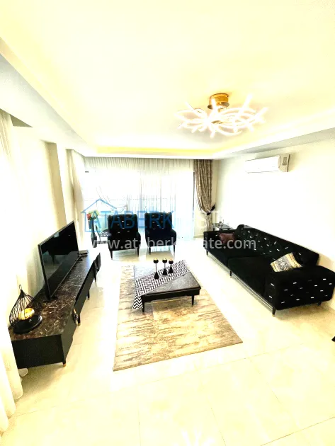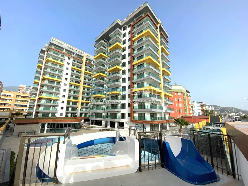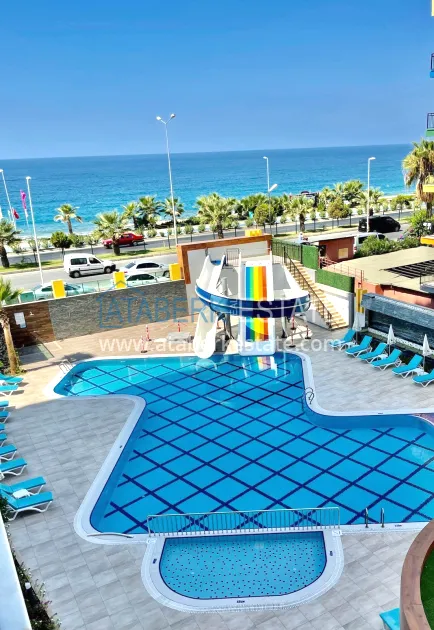 The 2+1 apartment is located on the 3rd floor, is oriented to the south-west, with a total area of 100 m². The layout includes a living room with an American-style kitchen, two bedrooms, two bathrooms and a cozy balcony with direct views of the Mediterranean Sea. The property is being sold as you see in the photo.