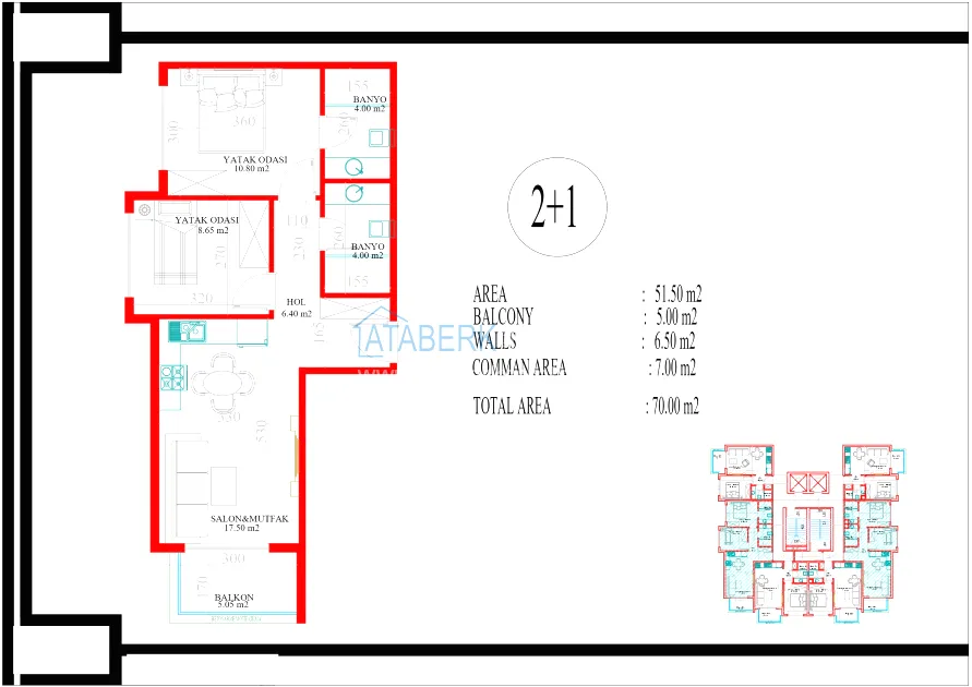 The residential complex consists of one block with a protected closed area. For the convenience of residents, a variety of infrastructure is provided: a swimming pool, a recreation area and places for recreation. Everything is designed for everyday comfort and a quiet life. The complex is located in a quiet part of the district, about 1 km from the sea and 400-500 meters from Ataturk Street, where shops, cafes and other elements of the city's infrastructure are concentrated.