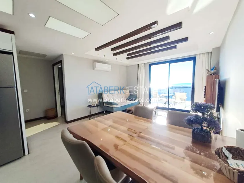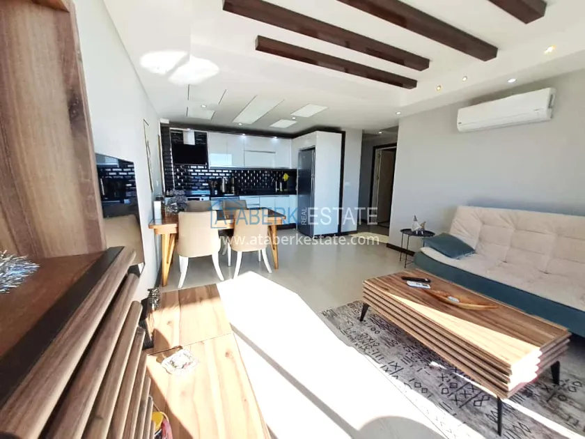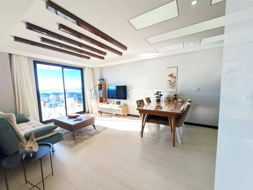 The 65 m² 1+1 apartment is located on the 11th floor. A spacious living room with an open-plan kitchen, a cozy bedroom, a modern bathroom and a balcony where you can enjoy the sea. Stylish interior and full readiness for living - furniture and appliances.
