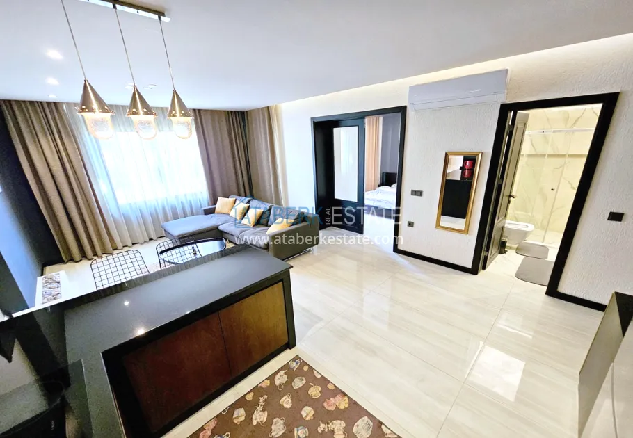 The 1+1 layout includes a living room with an open kitchen, a bedroom, a bathroom and a balcony. The total area is 65 m². The apartment is located on the first floor and has an east orientation, which provides plenty of natural light in the morning. The apartment is fully furnished and equipped with household appliances — you can move in right away at no additional cost.