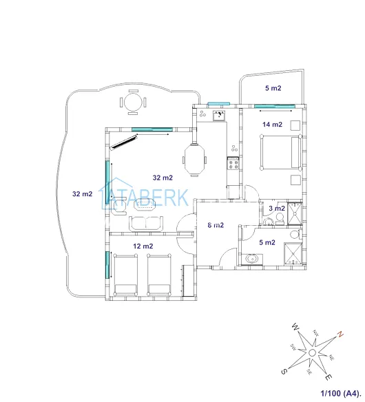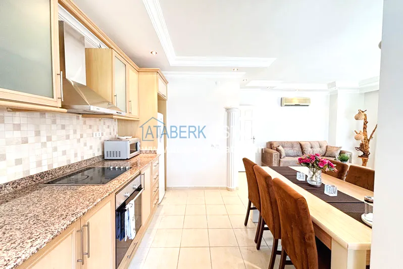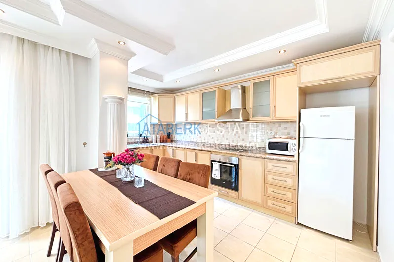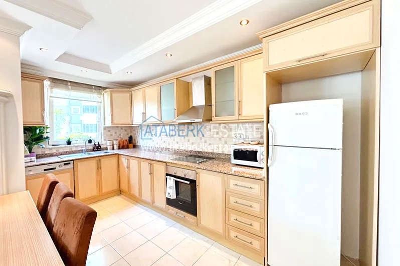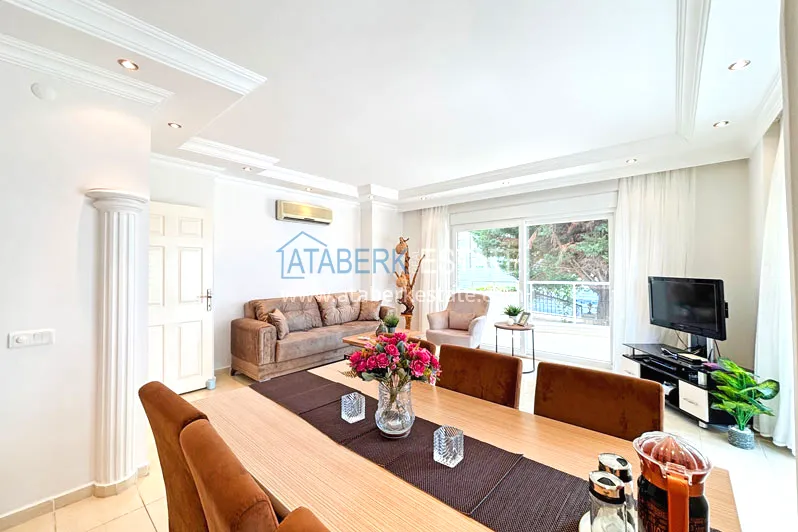 A 2+1 apartment with a total area of 125 m² is located on the ground floor. The layout includes a living room, an American-style kitchen, two bedrooms, two bathrooms and two balconies, making the space particularly comfortable for families or longer stays. The apartment is offered furnished, the rooms are spacious and well-zoned, with a sense of air and freedom that is rarely found in standard urban formats.