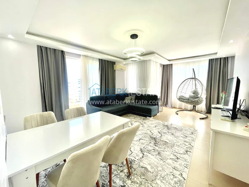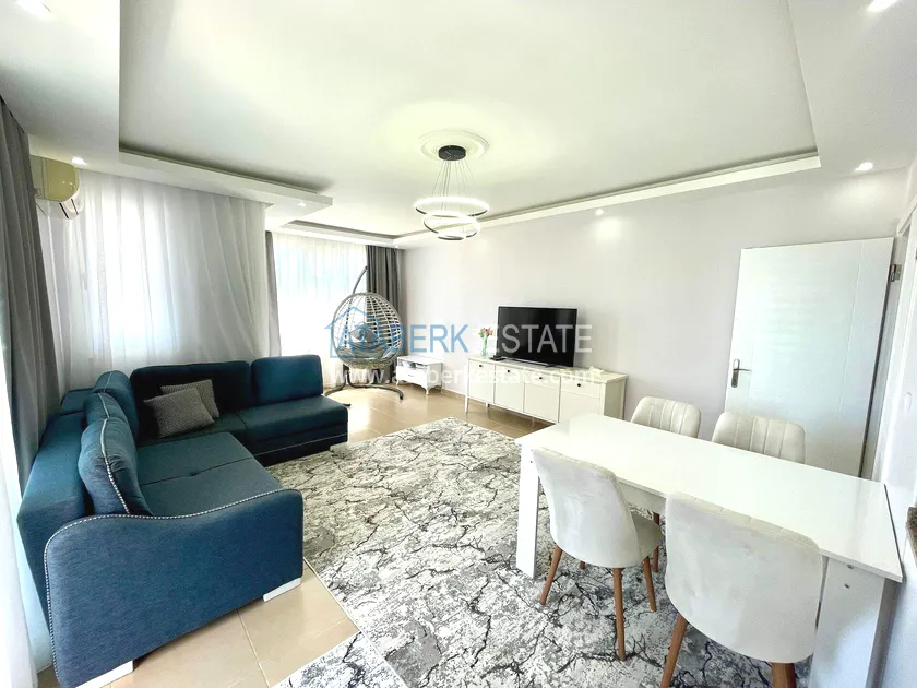 The2+1 apartment with a total area of 120 m² is located on the 8th floor and is south-facing, which provides maximum natural light during the day. The layout includes a living room, a separate kitchen, two bedrooms, two bathrooms and two balconies. The apartment is fully equipped with new furniture and appliances. The space feels free and comfortable, which is especially valuable for