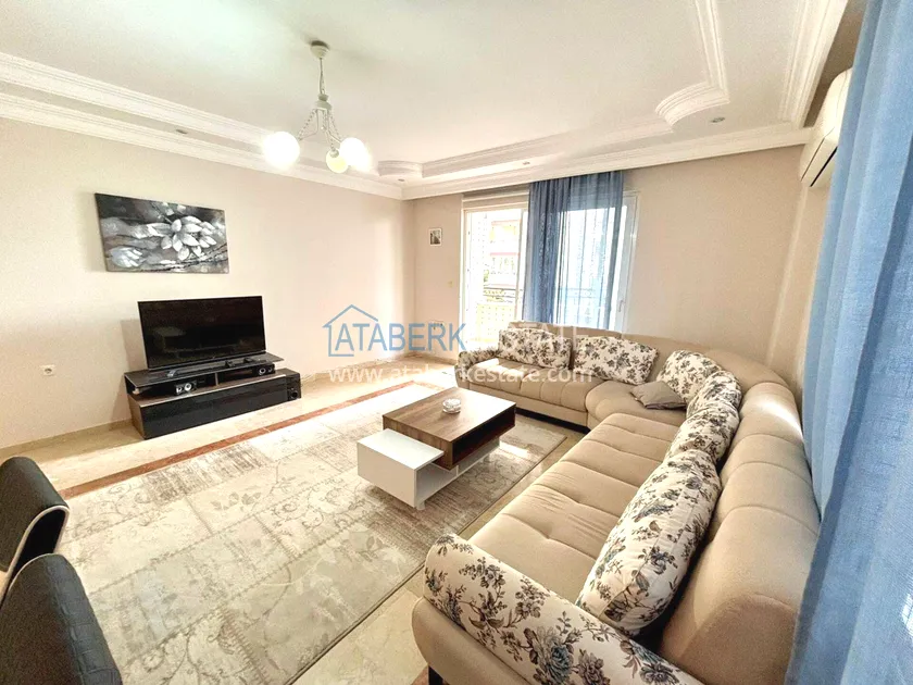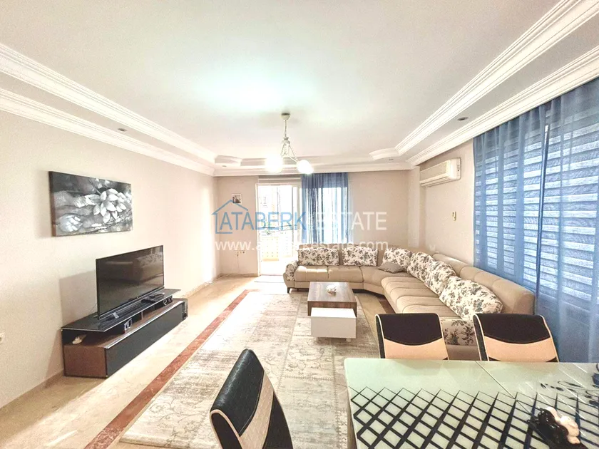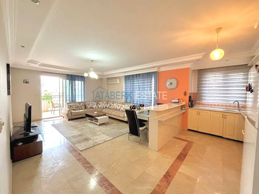 city infrastructure. The2+1 apartment is located on the 1st floor with a total area of 100 m². The apartments are sold furnished. The layout includes a living room with an open-plan kitchen, two bedrooms, 2 bathrooms and 2 balconies.