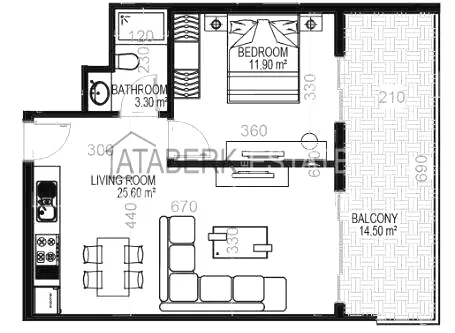 The one-bedroom apartment is located on the 11th floor, is oriented to the east and has a partial sea view. The eastern orientation provides mild morning sun and a comfortable microclimate. The apartments are sold with furniture and appliances, the balcony is glazed, which allows it to be used as an additional functional space all year round. The layout includes a spacious living room with an open-plan kitchen, one bedroom, a bathroom, and a balcony.