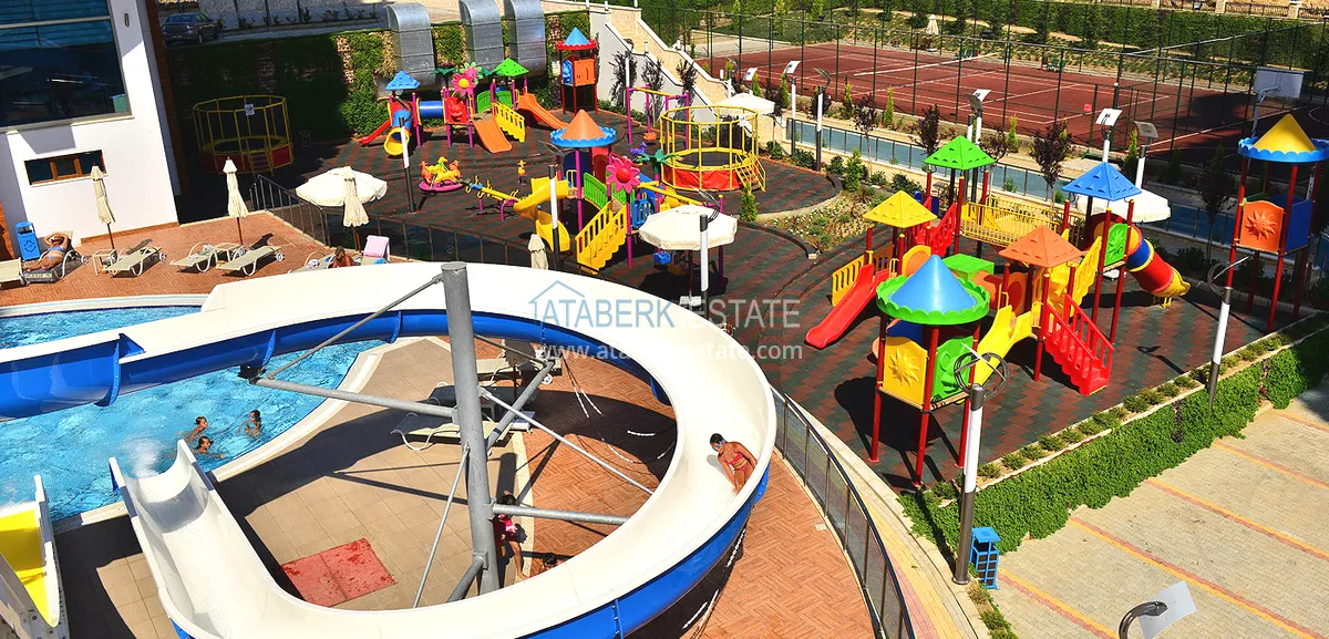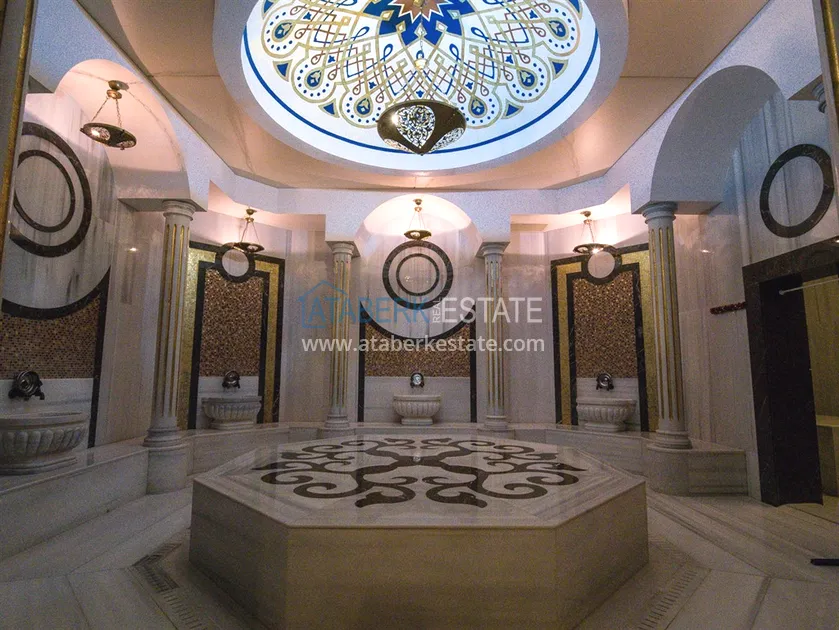 The complex is located on a hill away from the resort town of Mahmutlar. Consists of 3 residential blocks, a SPA center and a huge closed private area with a luxurious landscaped infrastructure. In fact, the complex is a city within a city. On the territory of the condominium, you can buy everything you need in shops and in covered galleries. There is a private beach with a free shuttle. The complex employs Russian-speaking staff. Also on site there is a bicycle and car rental, airport transfers, childcare services - babysitting.