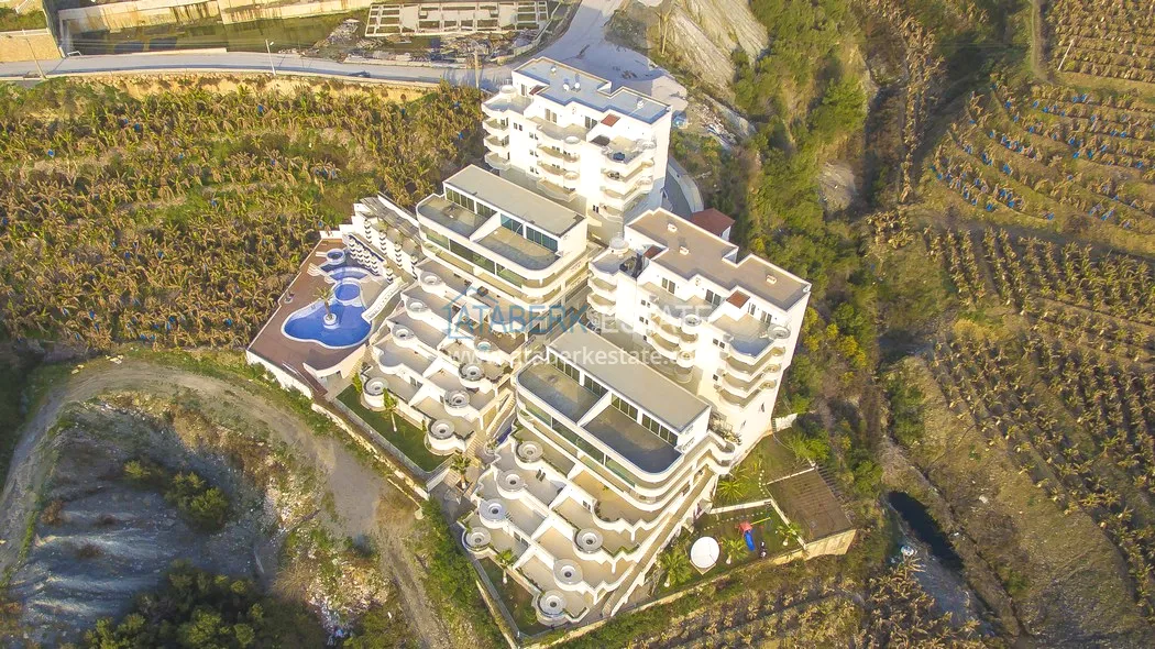 - The residence has a convenient location - surrounded by banana plantations and beautiful mountain landscapes, where the purest mountain air, silence and tranquility reigns. It is located on a hill, thanks to which the apartments offer an unforgettable view of the Mediterranean Sea, the city and the Taurus mountains. The coast is 1500 meters away. The nearest shop is 100 meters away.