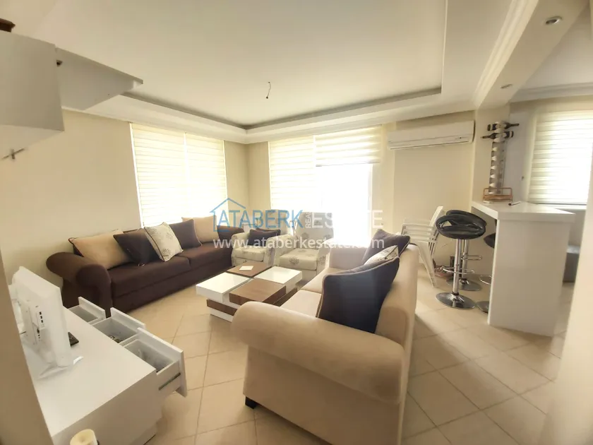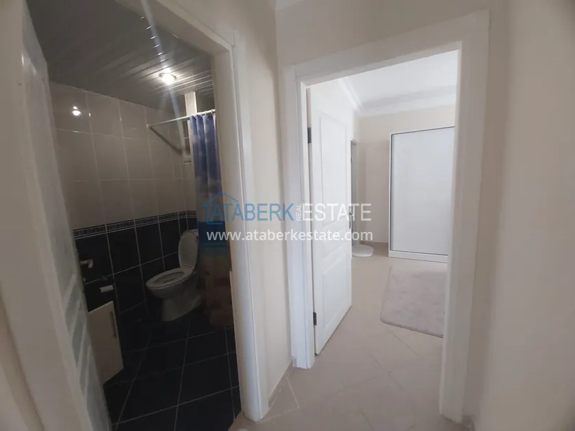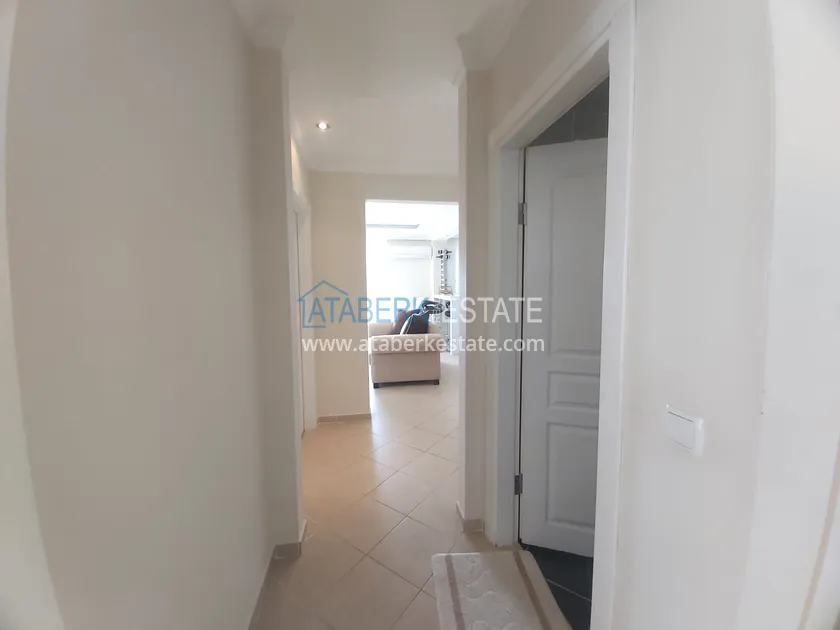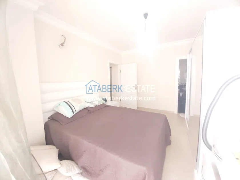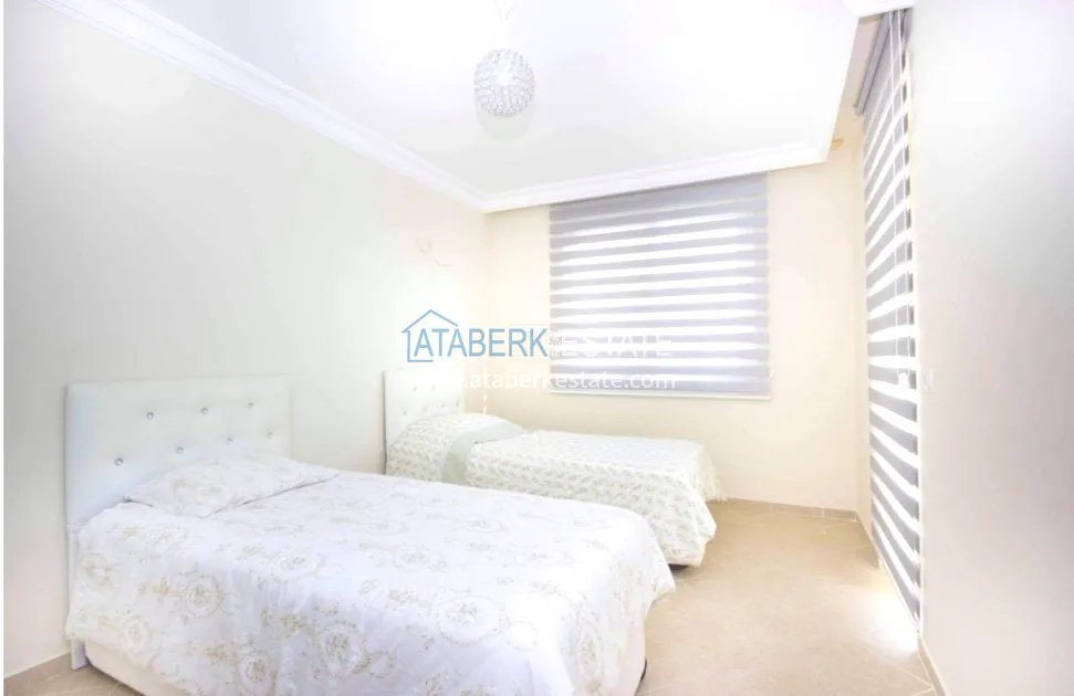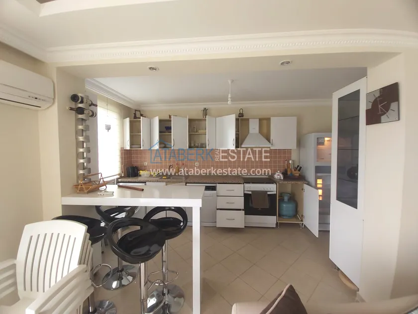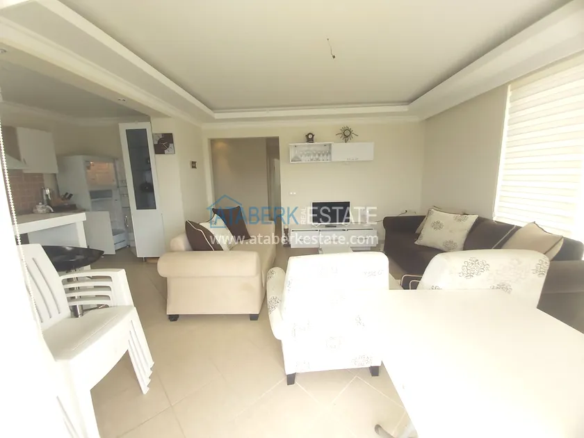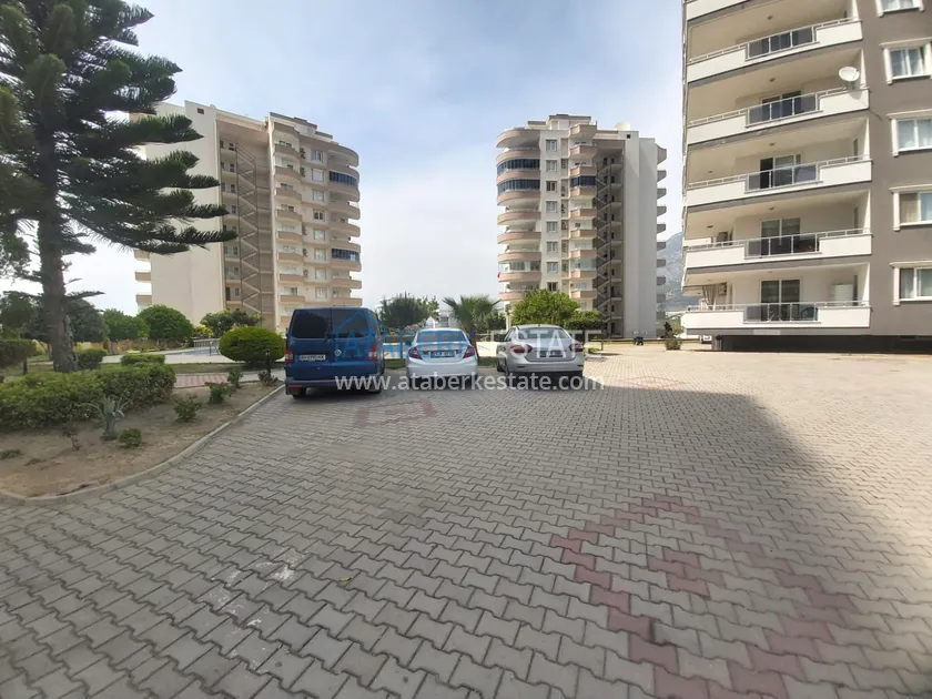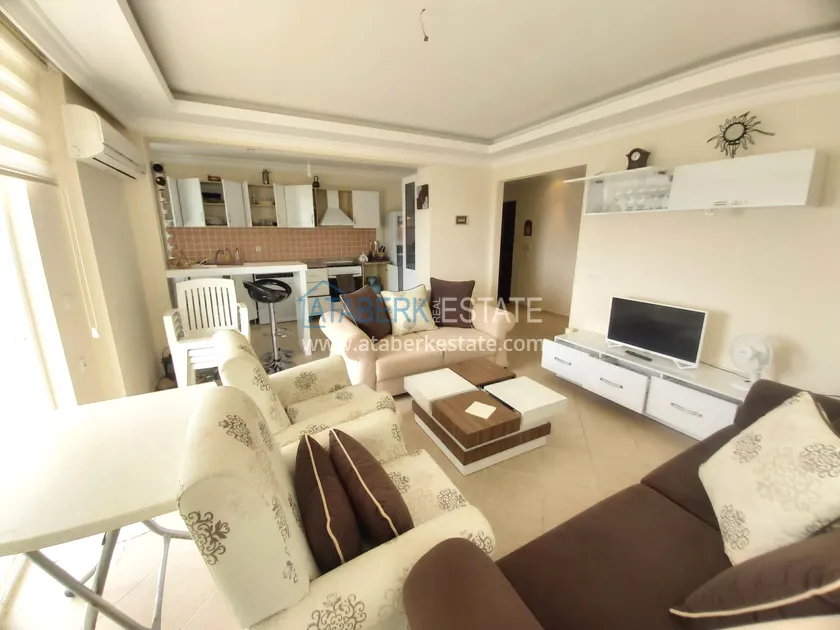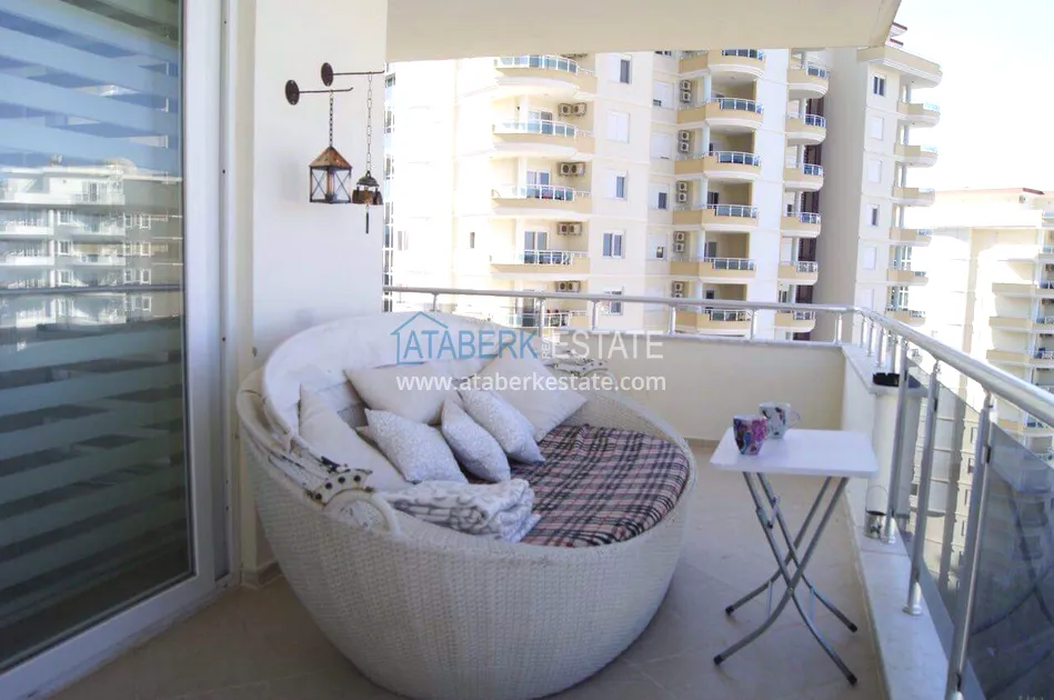 The proposed three-room apartments are located in a residential complex with a beautiful, well-groomed, large area, it has its own self-sufficient internal infrastructure. Aydat - 100 lira per month. The complex has two 12-storey buildings with panoramic elevators. The apartment is located on the 7th floor, south-west oriented, layout 2 + 1, total area is 120 m2. This layout includes: two bedrooms, a spacious living room with an open kitchen, two bathrooms, a corridor and two balconies. In this apartment you will enjoy a beautiful open view every day - the sea, mountains, picturesque surroundings. All furniture and appliances included in the price are in good condition. The interior is dominated by light colors.