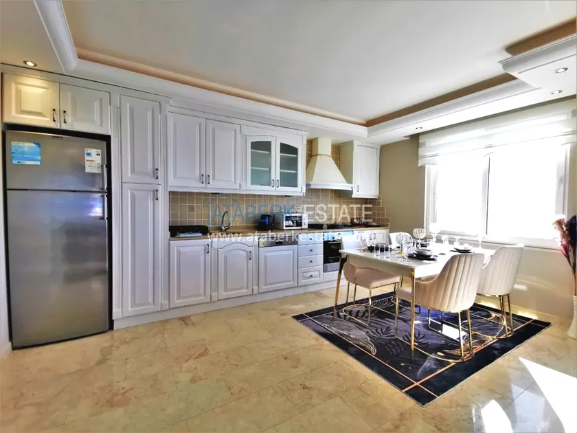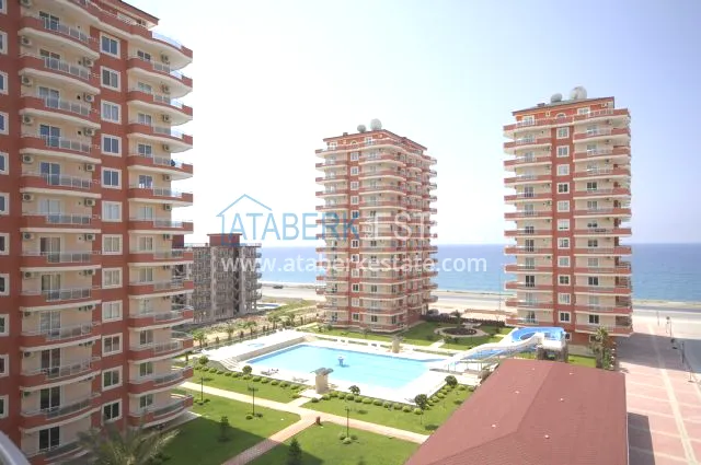 The residential complex has a well-groomed large area, where there is its own internal infrastructure. Aydat - 260 lira per month. Located on the main street - Barbarossa, which is represented by many cafes, restaurants for every taste and budget. Parks, pharmacies, schools, supermarkets, ATMs are all within walking distance. The sea is across the road, there is an underground passage, and a chain supermarket Migros is 100 meters away.