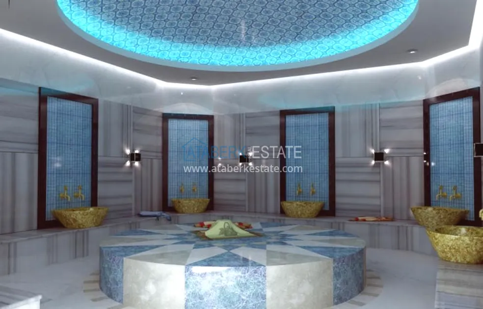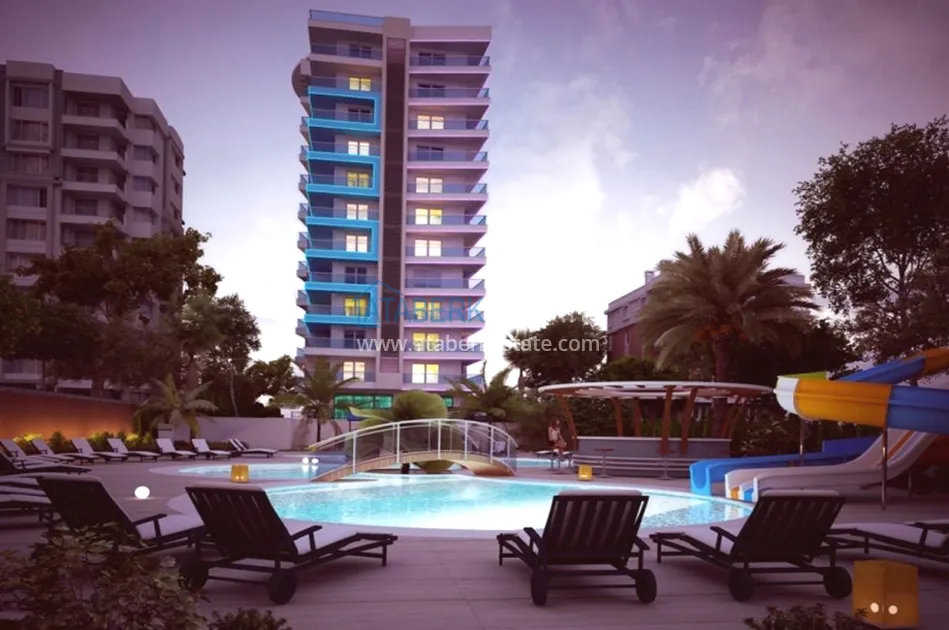The beautiful residence is located 50 meters (right across the road through an underground or ground crossing) from the beach and on the main street of the area - Barbarossa, on which there are many restaurants and cafes for every taste and budget, bank branches, shops, pharmacies, exchange offices, parks and playgrounds. Public transport stops are also located next to the complex. The complex consists of two 12-storey blocks and a closed landscaped area, has its own internal infrastructure.