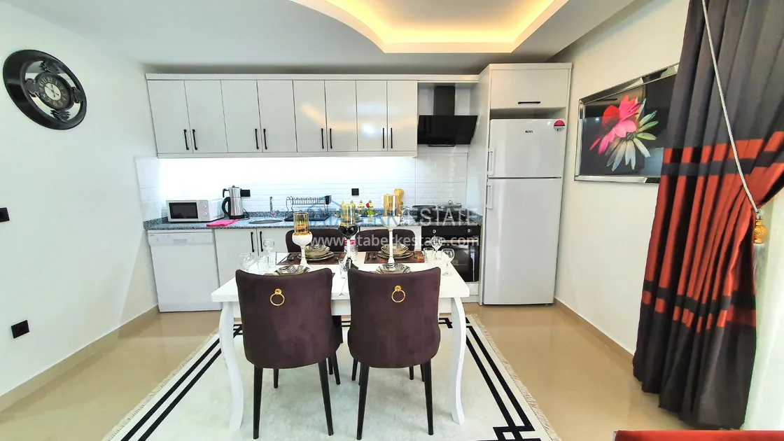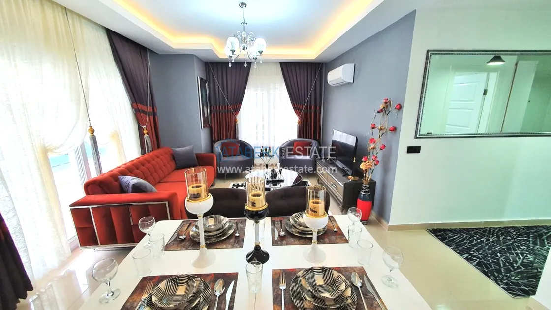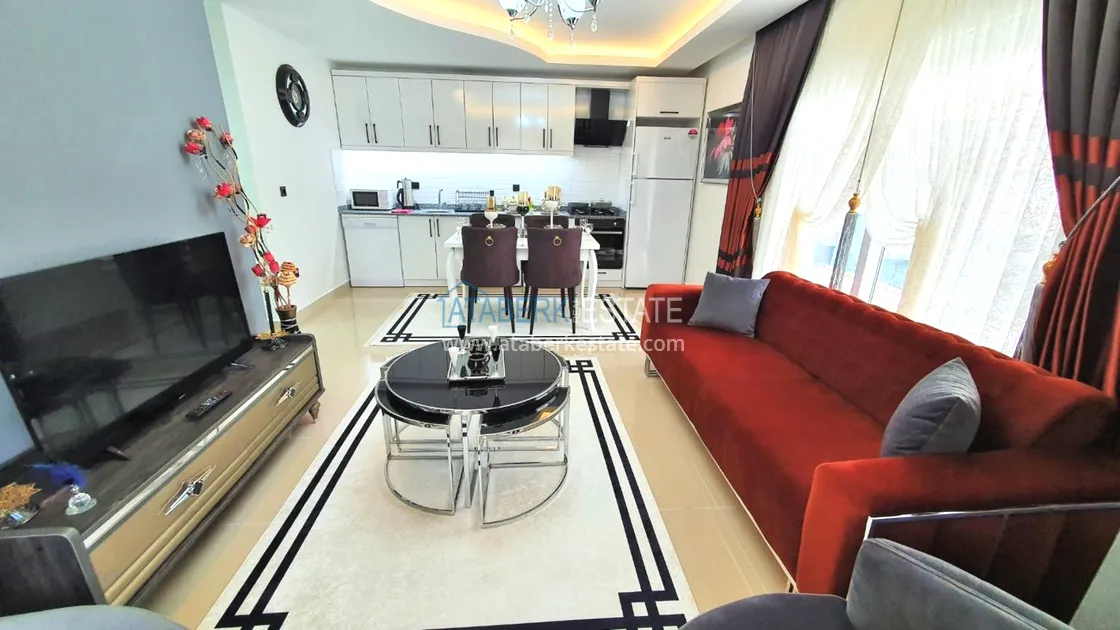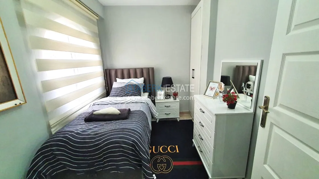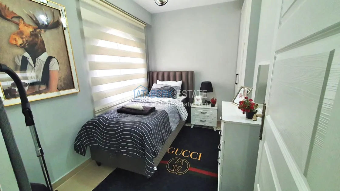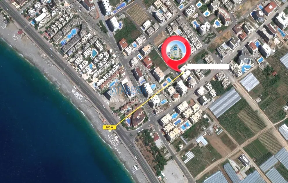 The residential complex in which the apartment is located is located at the junction of two districts, Mahmutlar and Kargicak. The beach is 300 meters away - it's about 4-5 minutes on foot, there is a bus stop 100 meters away. Within walking distance: pharmacies, restaurants, chain cafes and supermarkets (mini Migros, Bim, Sok), children's playground. The residence is small, with a cozy area, there is the necessary infrastructure. Aydat 120 lira per month.