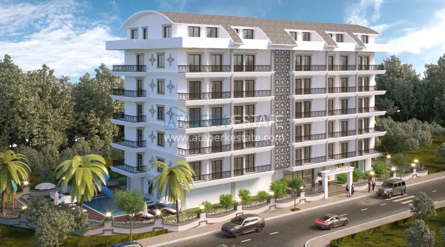 A young modern residential complex with self-sufficient infrastructure includes one 5-storey building and a closed area with landscape design. The Mediterranean Sea is less than 5 minutes' walk away. The residence is located next to a large city park, 200 meters from the central avenue of Barbarossa. Within walking distance from the complex there are cafes, shops, supermarket chains, pharmacies and public transport stops.