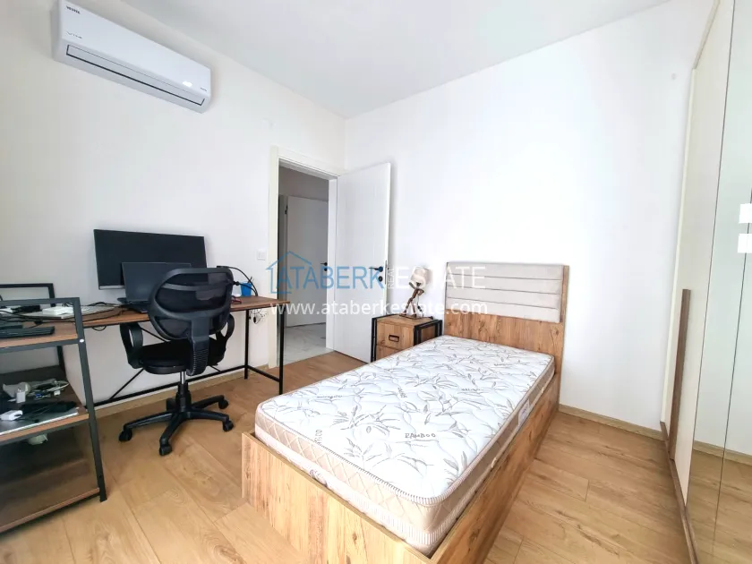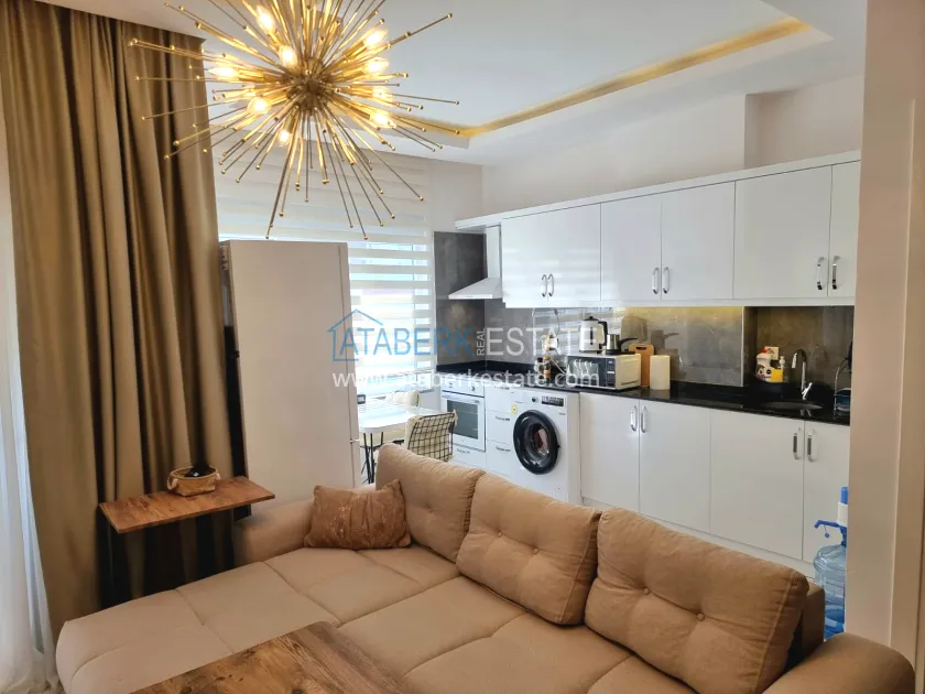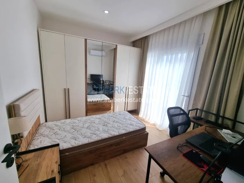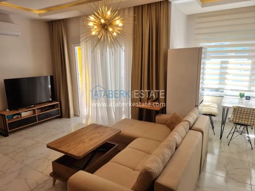 The offered apartment is located in a small modern complex with minimal infrastructure. It consists of one seven-story building with 20 apartments and an adjacent private area. The residential complex is located on Ataturk Street, in the immediate vicinity of the Tuesday market, only 350 meters from the sea, which makes this property an excellent choice for those who like to spend time on the beach. The monthly average is 500 lira, which includes servicing all the amenities of the complex.
