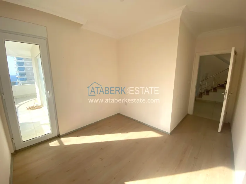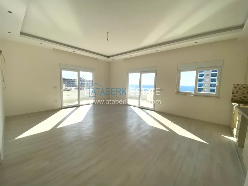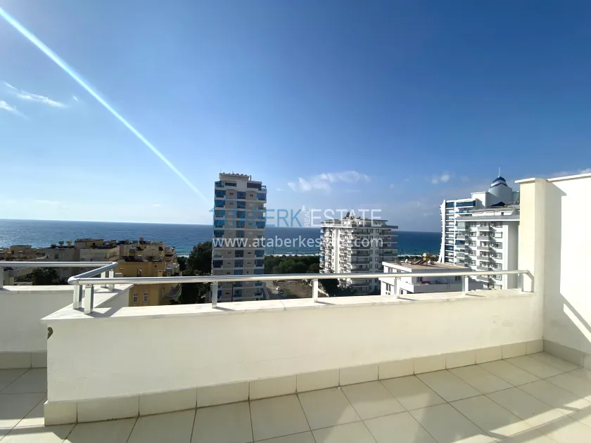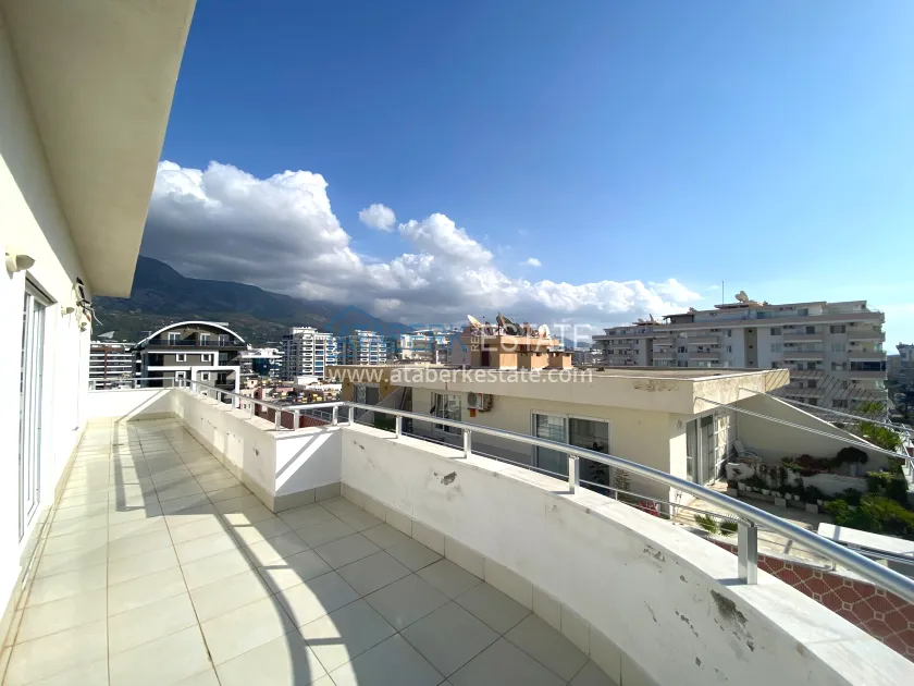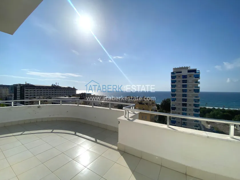 The penthouse for sale is located on the last, seventh floor of a residential building and occupies two levels. The total area is 185 m2 (net area is 170 m2). The layout includes two living rooms, two American-style kitchens, three bedrooms, three bathrooms and four balconies. Thanks to its south-east orientation, the apartment always has plenty of natural light, and the windows offer pleasant views of the mountains, Barbarossa Street and the Mediterranean Sea. The apartment is sold unfurnished, which allows the new owner to implement their own design ideas.