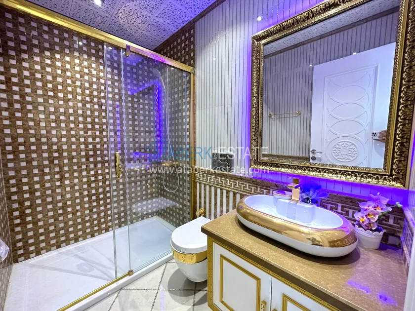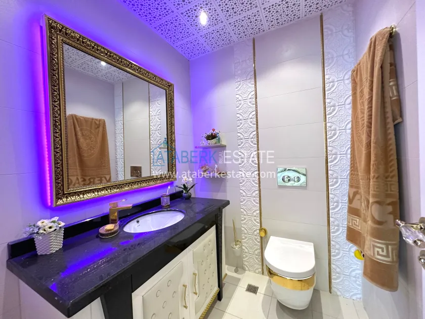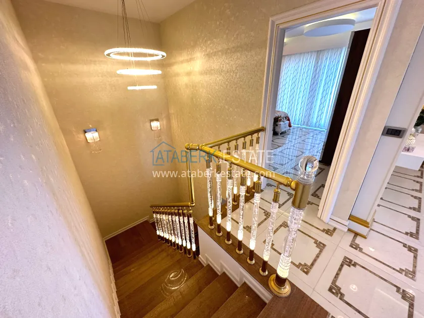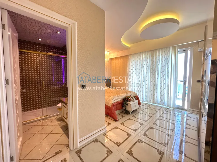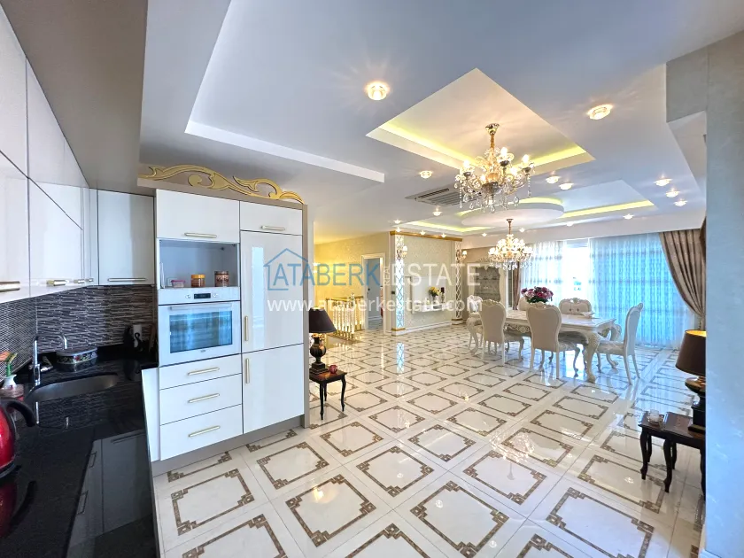 The 3+1 two-level apartment with a total area of 220 m² occupies the upper floors of the building, which provides panoramic views and maximum privacy. The layout includes a spacious living room with an open American-style kitchen, three bedrooms, three bathrooms with toilets, two balconies and a large terrace. The apartments are designed in luxury style, partially furnished, with high-quality finishes and thoughtful interiors. Thanks to its south, north, east and west orientation, the apartment always has plenty of light during the day. The windows offer breathtaking views of the sea, mountains and the city.