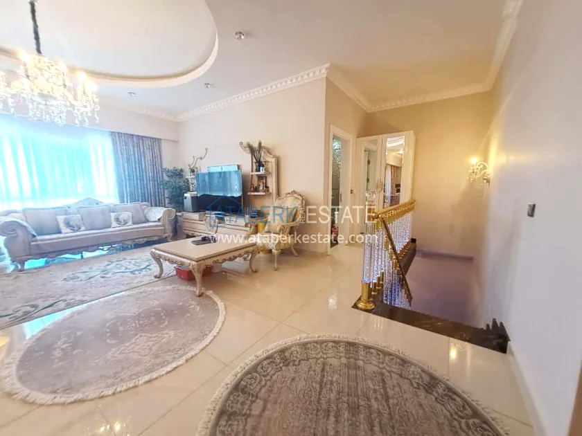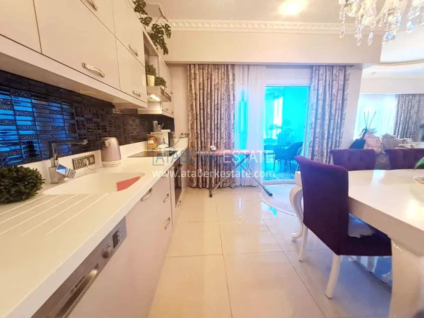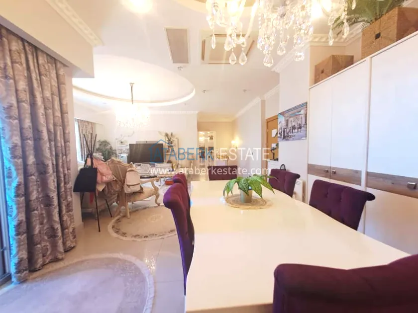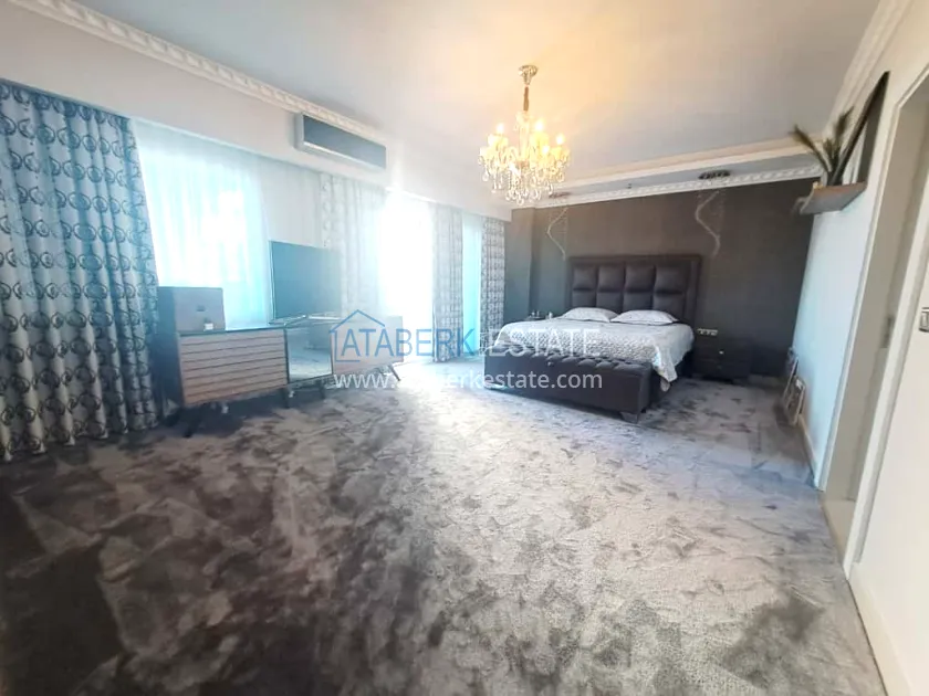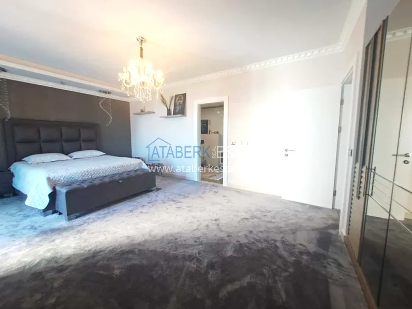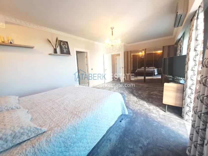 This 250 m² duplex apartment is located on the 12th floor and is fully furnished in a luxury style. On the upper level, there is a living room with an open-plan kitchen, a bathroom and a 36 m² glazed terrace — an ideal place to relax and dine with views of the city and the sea. On the lower level there are two bedrooms, two bathrooms and another spacious balcony. The interior is designed with individual taste: high-quality materials, decorative stucco, crystal chandeliers and soft colors create an atmosphere of refined comfort.