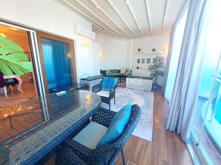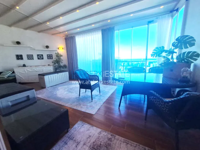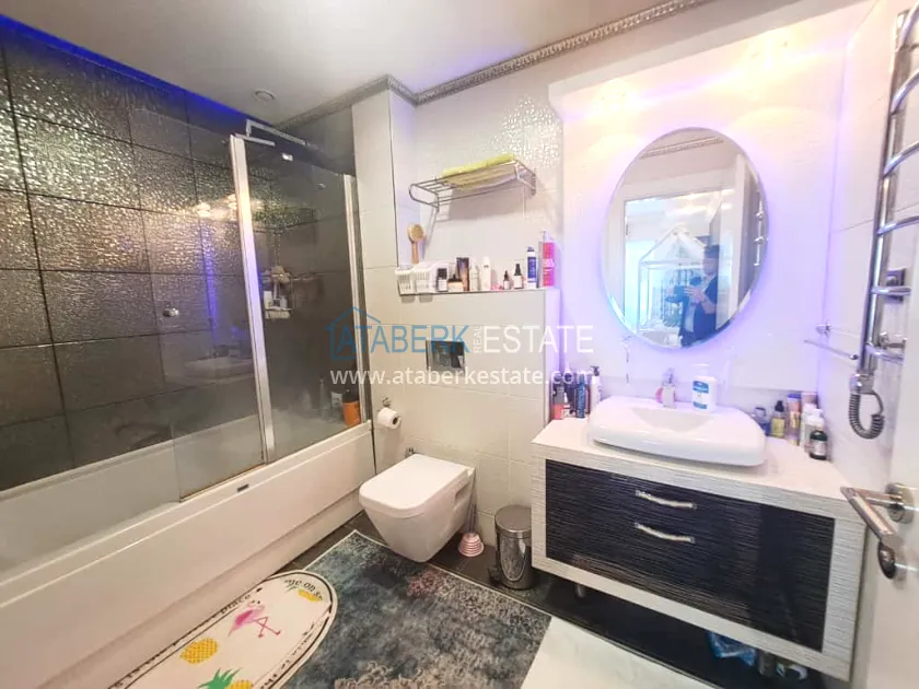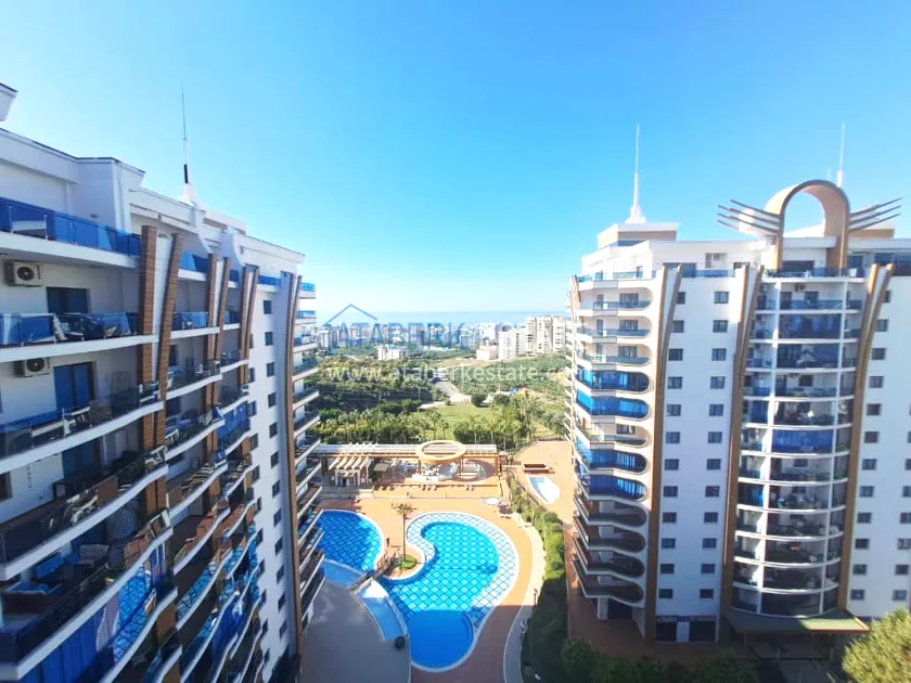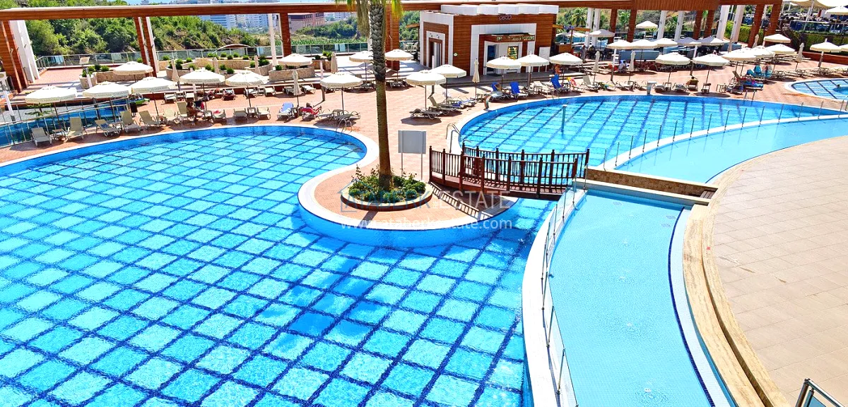 The residential complex in which the apartment is located is rightfully considered one of the best in Mahmutlar. It covers an area of 26,000 m² and offers residents a high level of service and an impressive range of amenities: well-maintained green areas, shops, a fitness and SPA center, a private beach with a bar and sun loungers, a transfer to the sea, and Russian-speaking staff ready to help with any questions. The distance to the beach is about 1.5 km. Aydat — 1675€ per year.
