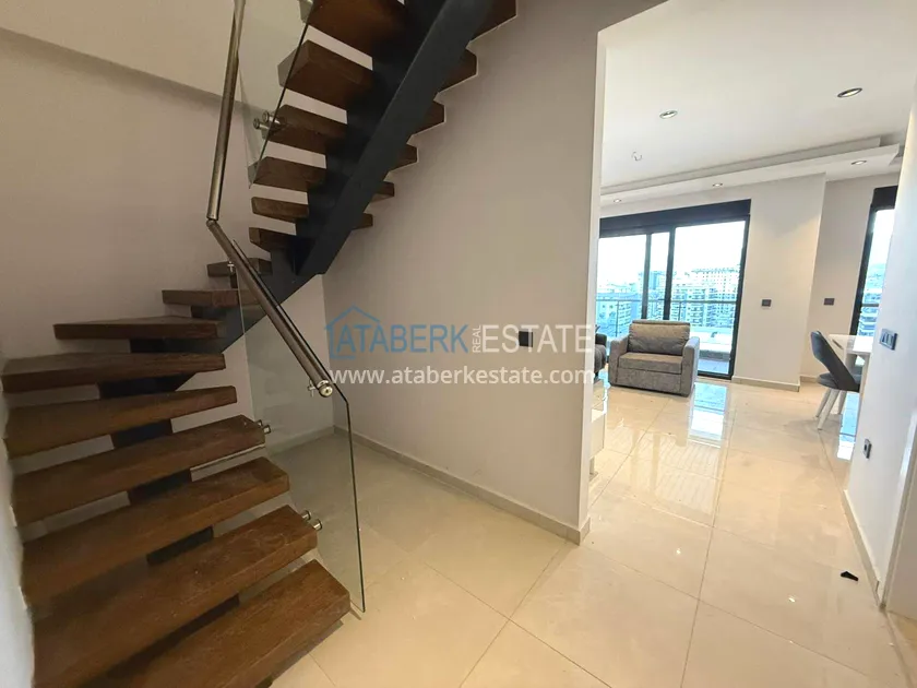 .A two-level 2+1 apartment with a total area of 105 m² is located on the 12th floor and by itself is perceived differently from standard solutions. Inside there is a spacious living room with an open-plan kitchen, two bedrooms, two bathrooms, a balcony and an open terrace. The south-west orientation provides plenty of natural light, while the upper floor adds air, visibility and privacy. The apartment is fully furnished, so you don't have to spend time arranging it after purchase