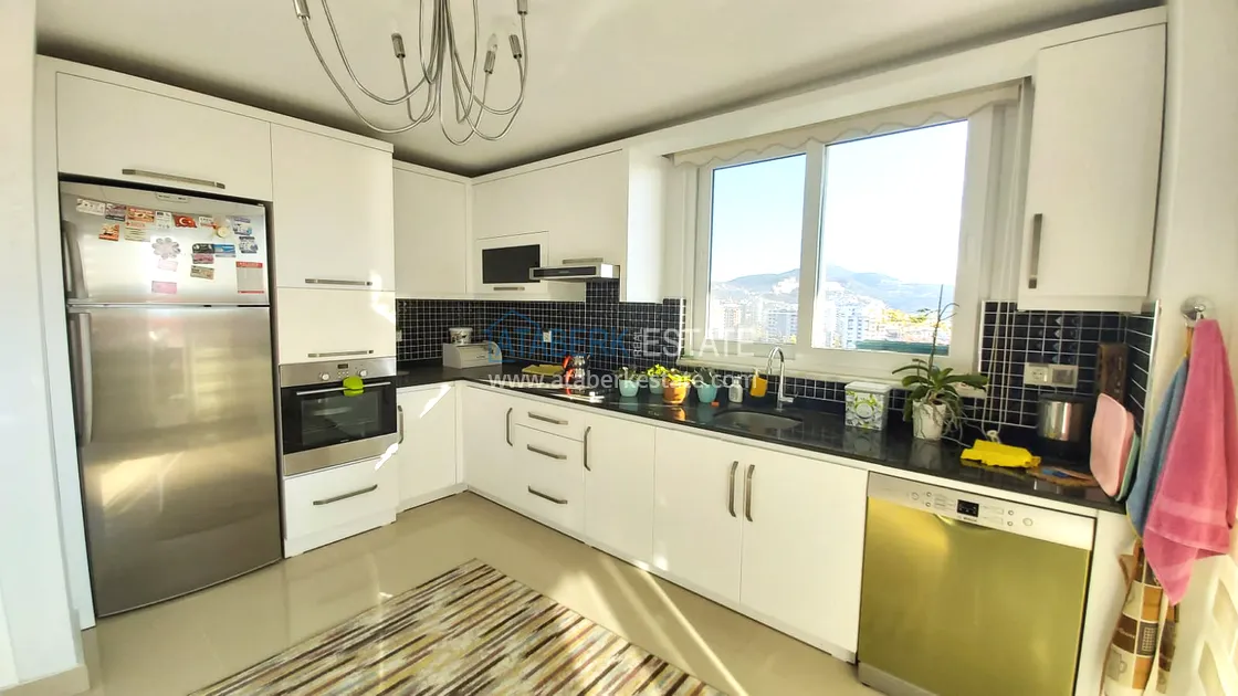 We present to your attention a large penthouse with an open panoramic view of the sea and mountains, as well as a bar and a jacuzzi on the roof of the house.