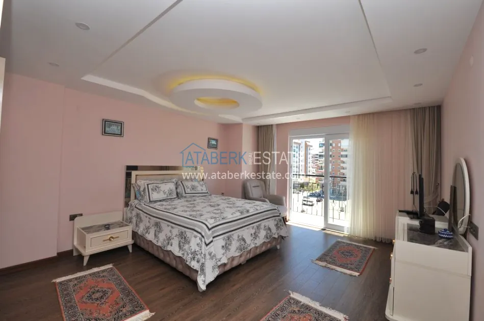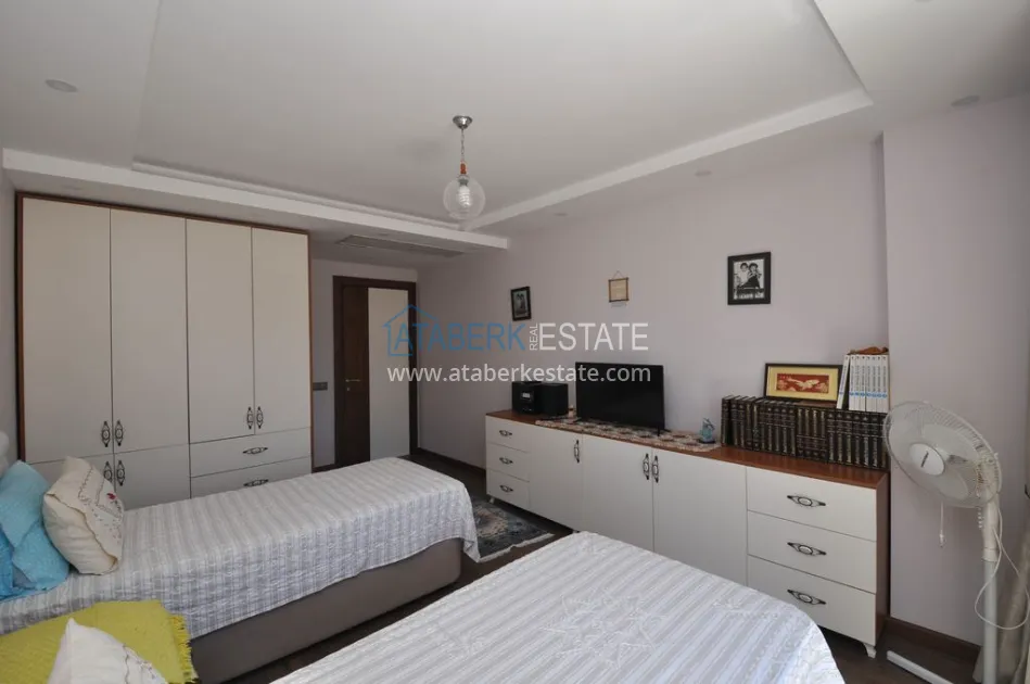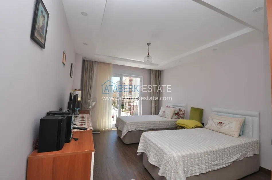 The house is young, consists of one 8-storey building. The first three floors are occupied by commercial real estate - offices, a jewelry store and a beauty salon. The rest, four floors are residential. There is no infrastructure, but there is an observation deck on the roof of the house. In the house on each floor there is only one apartment - complete privacy. The offered property is located on the top fifth residential floor (actually the eighth). The apartment is linear - one-level, spacious, bright with panoramic windows, laminate flooring in the living rooms, equipped with modern, high-quality furniture and household appliances. The apartment does not have standard Turkish spacious balconies, but each room has a French balcony. The view is open, the sea is partially visible. The layout offers three bedrooms, a spacious living room, a separate kitchen, two bathrooms and a spacious entrance hall.