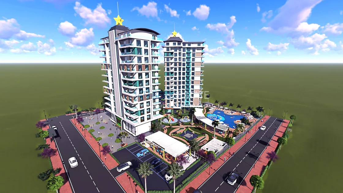 In the coastal and very popular area of Alanya - Mahmutlar, at a distance of 1.5 km from the sea, the construction of a multi-apartment residential complex with infrastructure based on the concept of a 5-star hotel is being completed. The project will be implemented on a plot of 6,500 m2, consisting of 2 blocks, the total number of apartments is 172. The construction is carried out by a reliable developer company with many years of experience. High-quality building materials and technologies are used in construction. The commissioning of the complex is scheduled for March 2023.