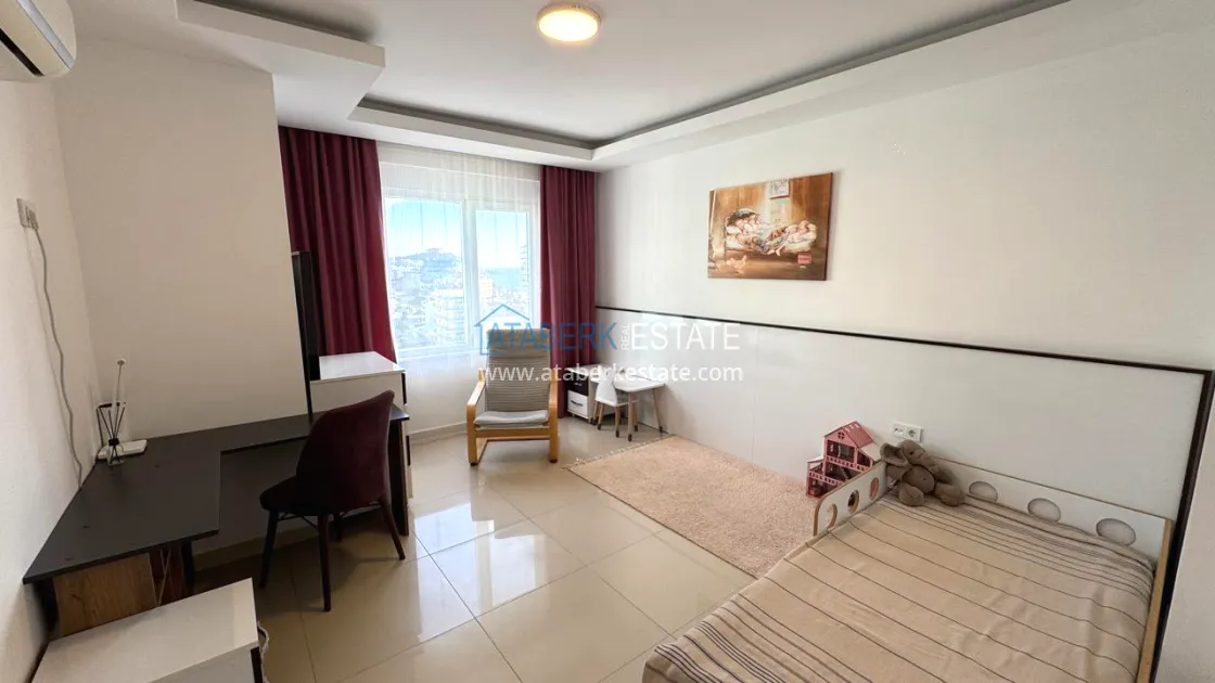 The apartments have a fairly large area of 150 m2, two floors and a good layout. They have a spacious living room combined with an open kitchen with access to the balcony, as well as three bedrooms, two bathrooms and an outdoor terrace. The apartment is located on floors 8-9 and has panoramic views - sea, mountains, urban surroundings. The penthouse is for sale with a full set of upholstered furniture and household appliances, which will significantly save your budget. The price also includes: a steel front door, high-quality plumbing in the bathroom, built-in furniture in the kitchen area, air conditioners and a running water heater.