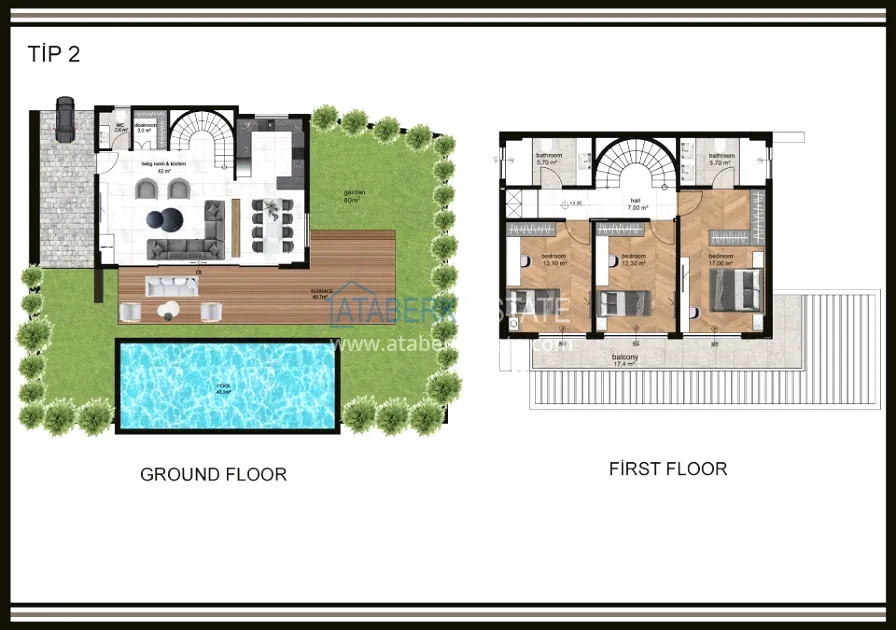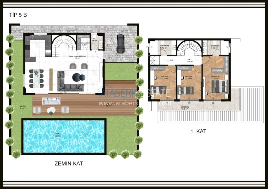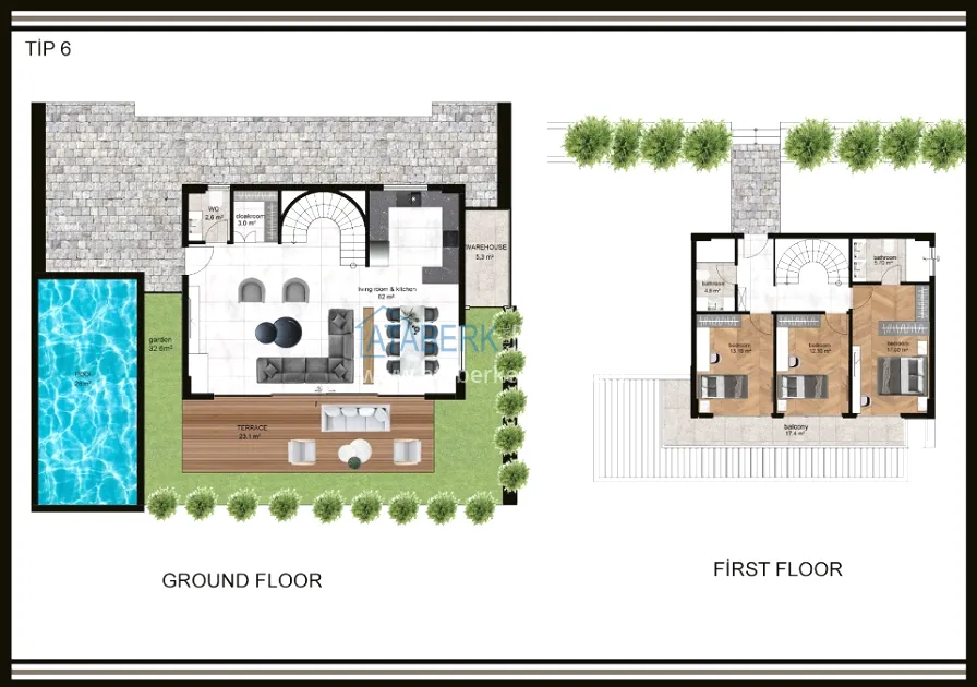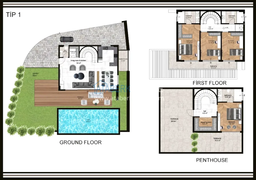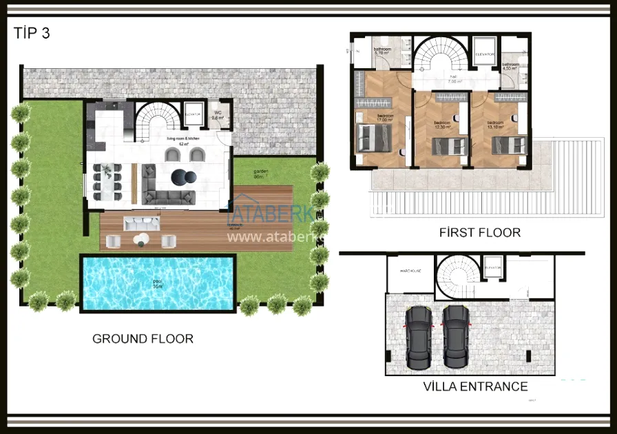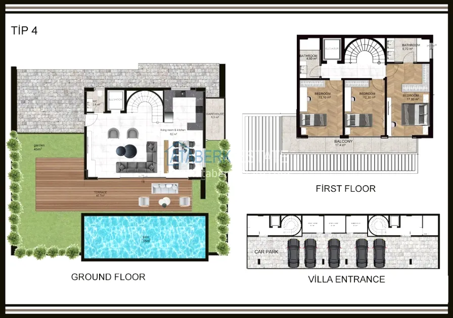 The complex is built on a plot of 6,533 m2 and consists of 18 villas, each with a private pool and parking space. Two layout options are proposed: 3+1 with an area of 200 and 225 m2, as well as 4+1 with an area of 250 m2. All villas have full panoramic views of the mountains, fruit plantations, the sea and an unforgettable view of Alanya's fabulously carved coast.