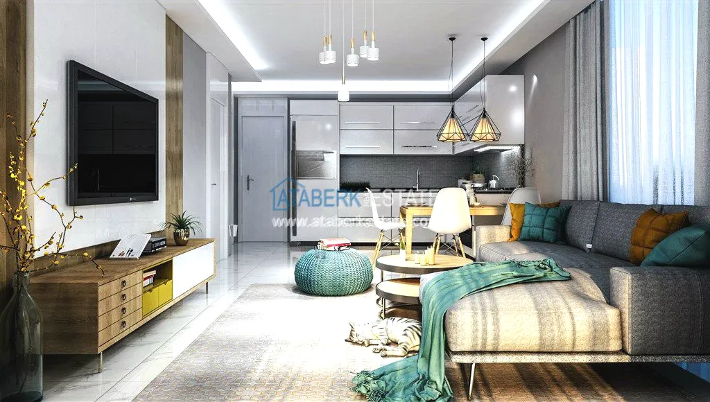 The construction of a new complex in Oba has been completed. The complex includes 2+1 and 3+1 apartments at very reasonable prices. Apartments are sold with a fine finish as shown in the photo. Features of the apartment: metal entrance doors, tiled floors, plumbing, kitchen built-in furniture, PVC windows, American type interior doors, air conditioners and water heaters!