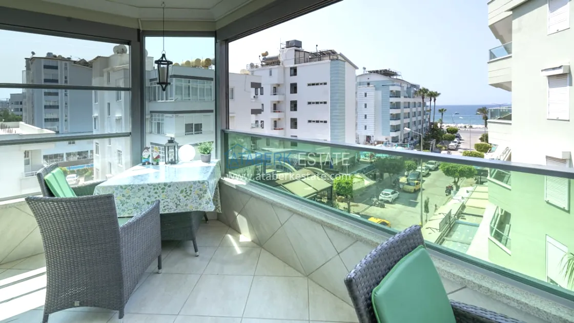 The offered property is located on the 4th floor of a 5-storey building with south-facing windows and open sea views. The layout of the 2+1 apartment has a total area of 100 m2 - a living room, an American-style kitchen, two bedrooms, a combined bathroom and a cozy glazed balcony. The apartments are for sale with all furniture and household appliances — everything is as pictured.