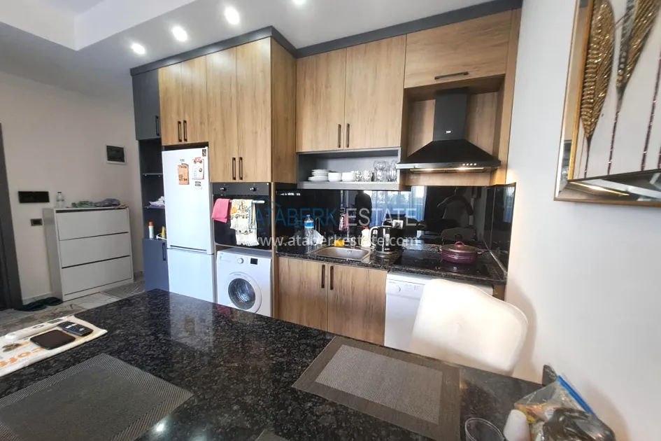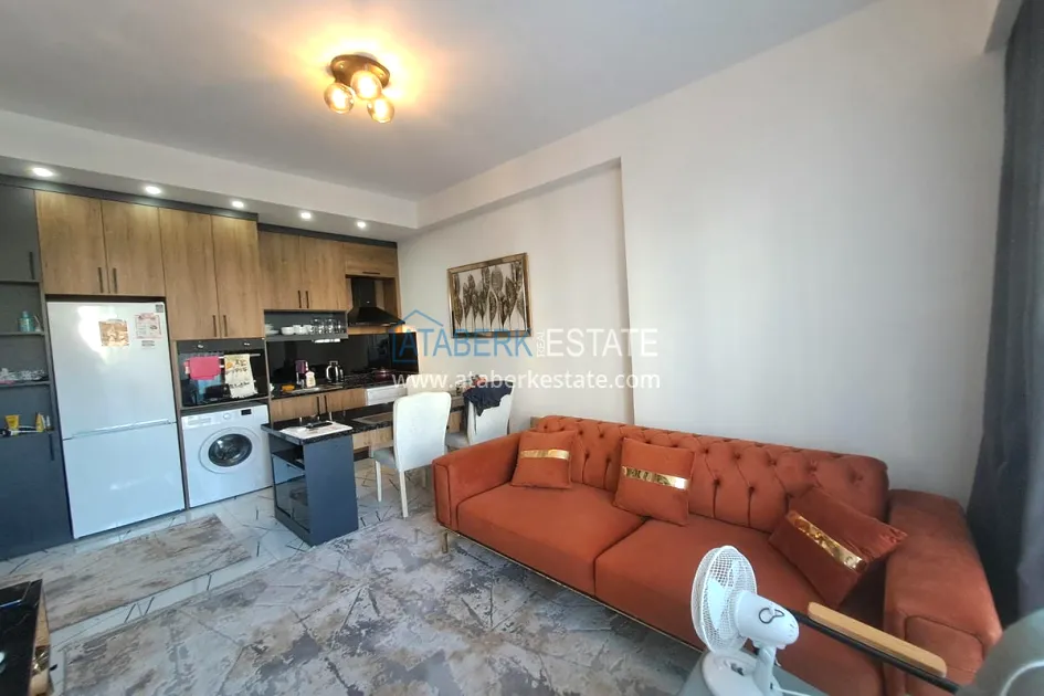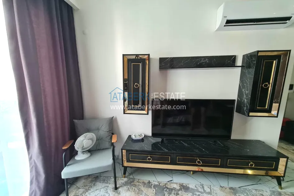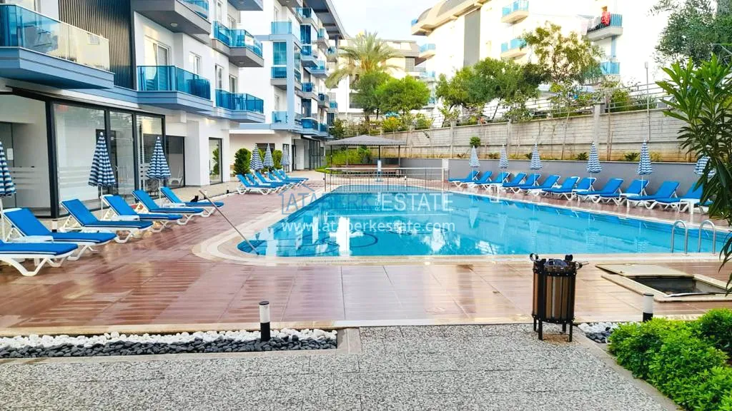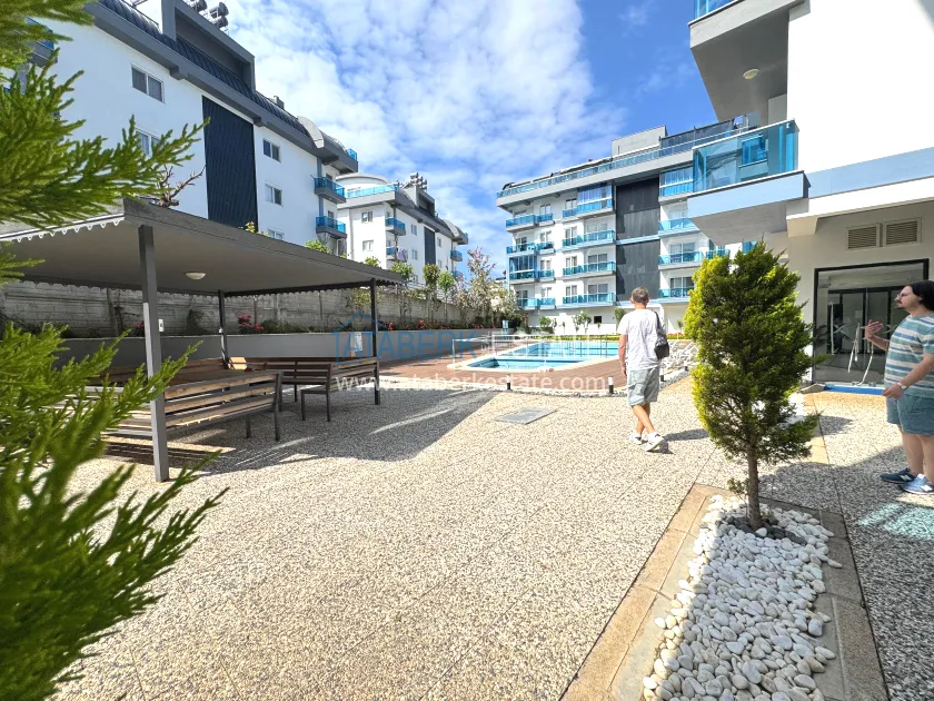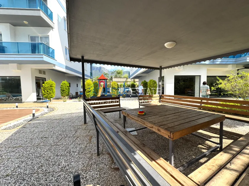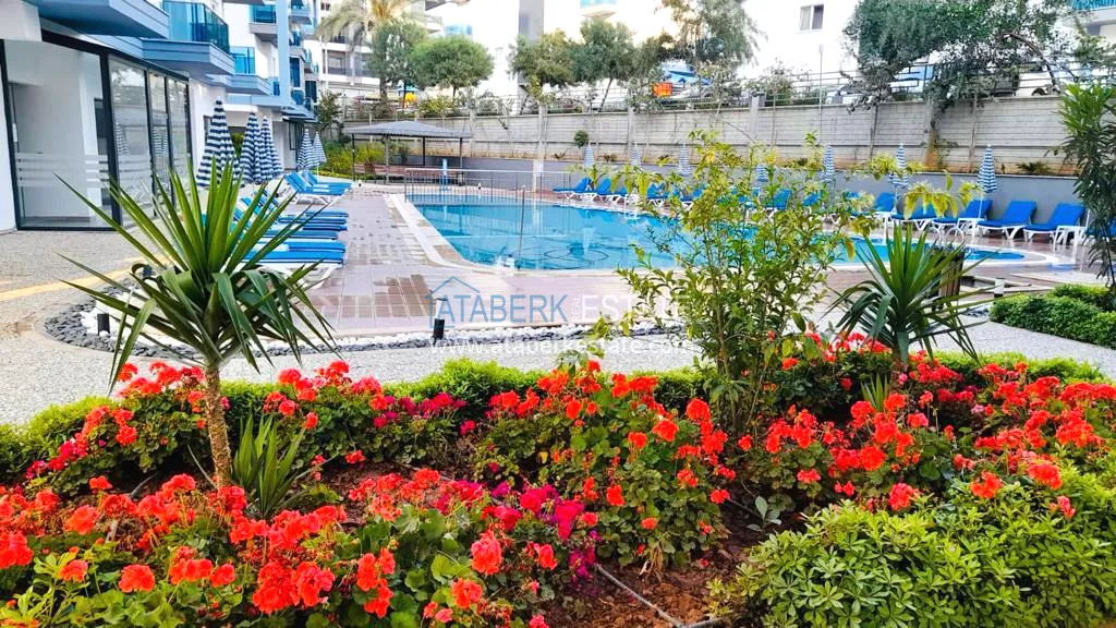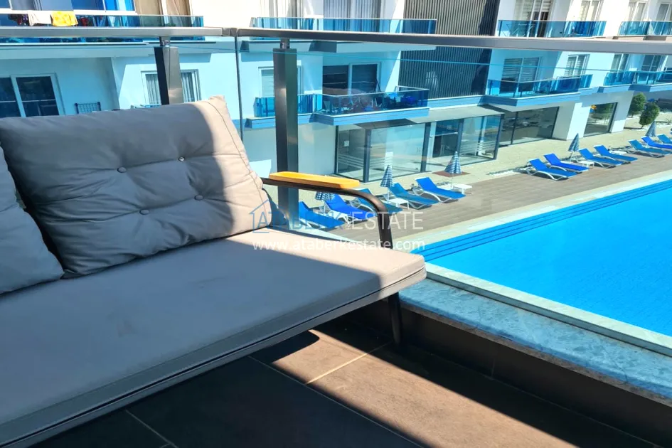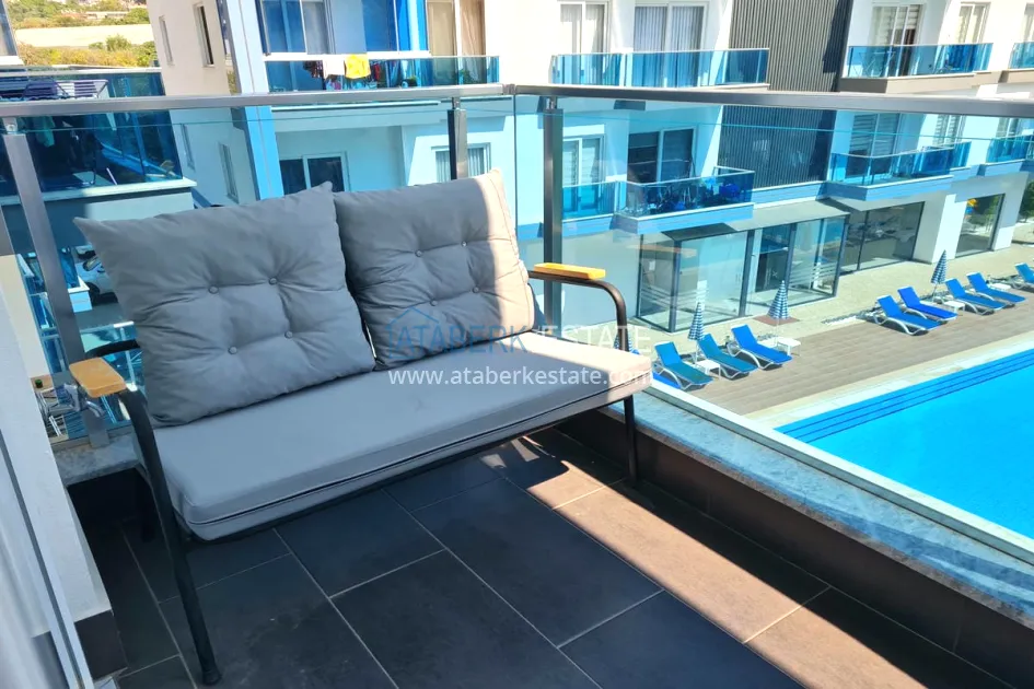 The 1+1 apartment is located on the 2nd floor, the view of the complex is a swimming pool. The layout includes: a living room combined with an open-plan kitchen, one bedroom, a bathroom and a balcony. The property is for sale with all furniture and household appliances.