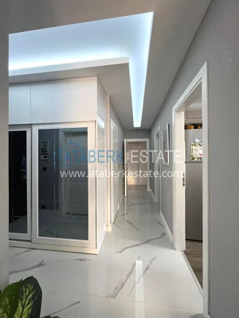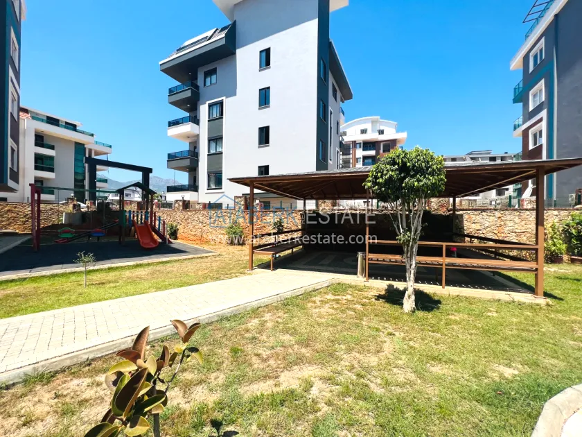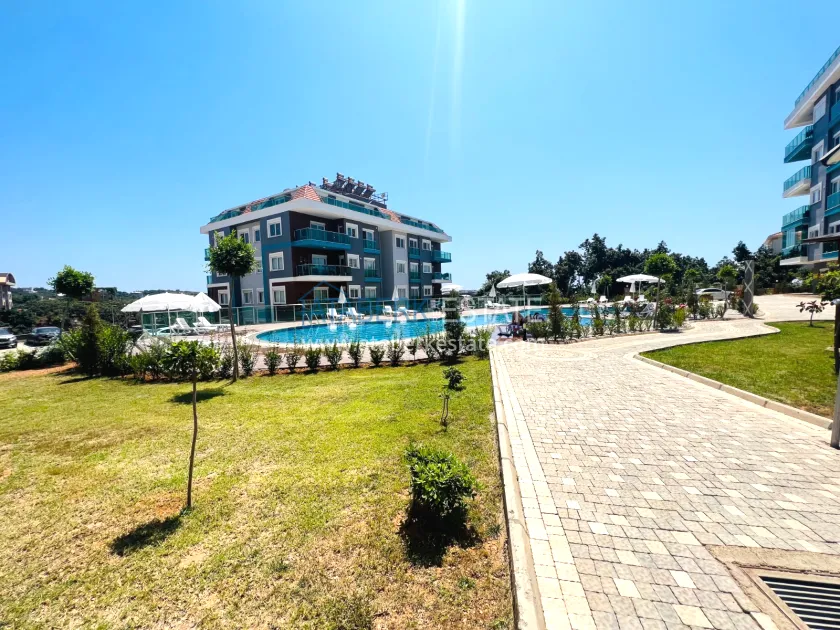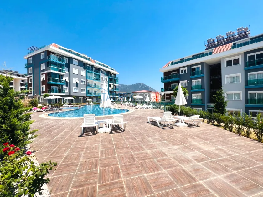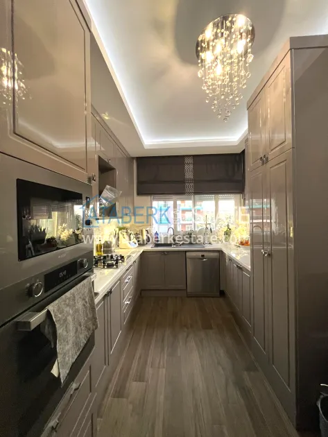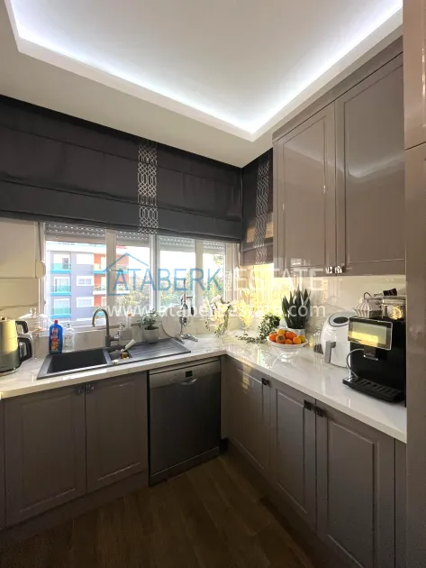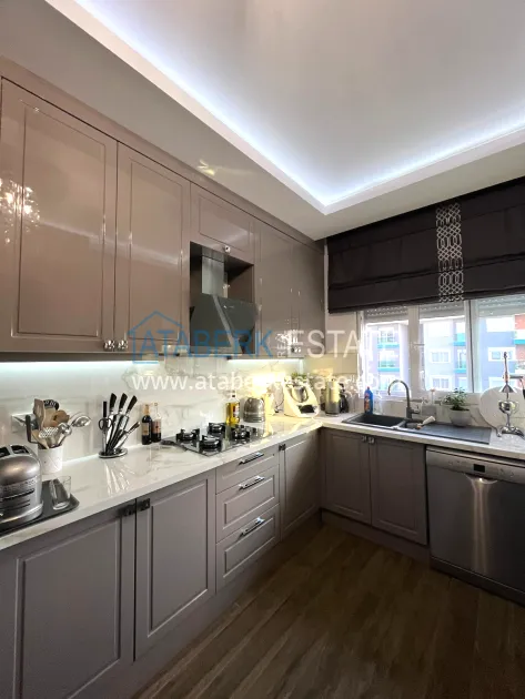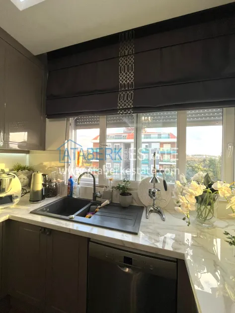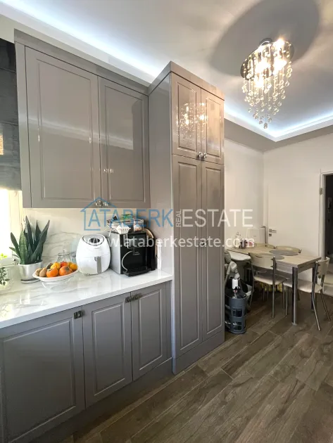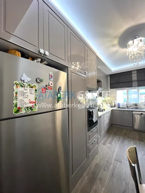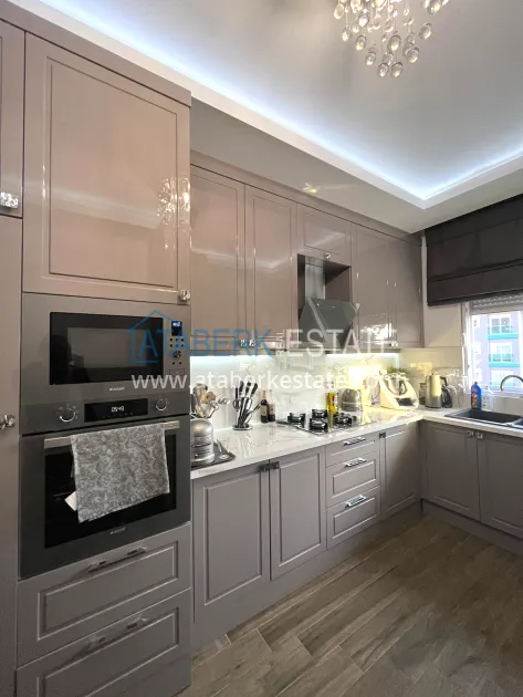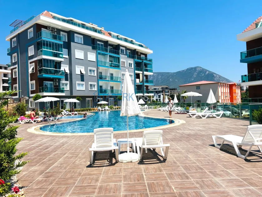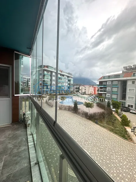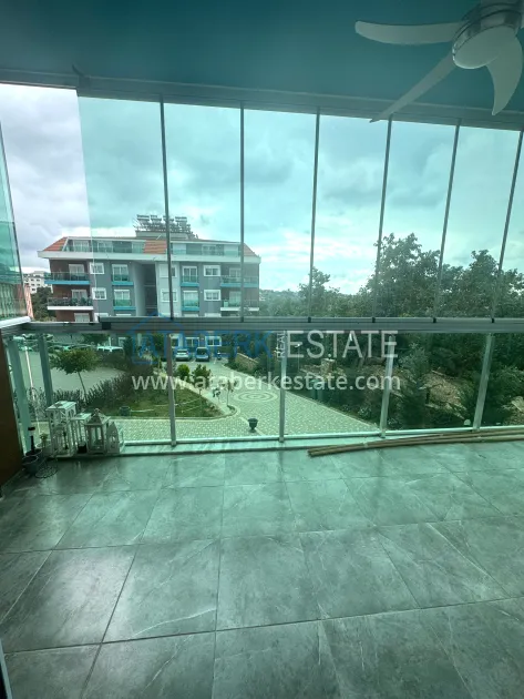 A linear four-room apartment with a separate kitchen and a glazed cormorant in a low-rise well-maintained complex in the European district of Alanya.