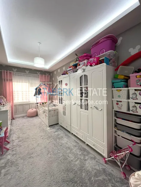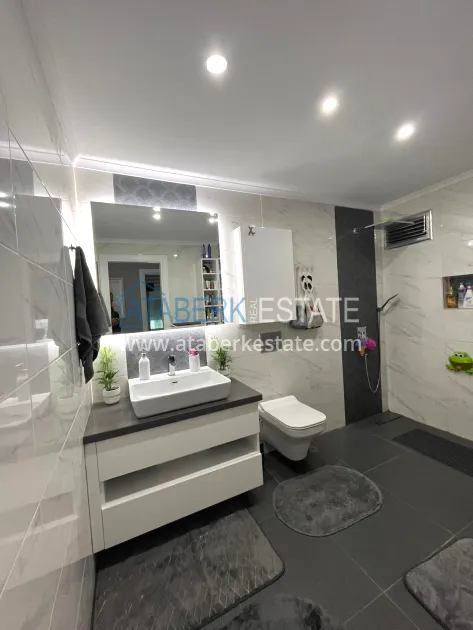 The offered apartment is located on the ground floor, the 3+1 layout has an area of 125 m2 — a living room, a separate kitchen, three bedrooms, two bathrooms and one glazed balcony overlooking the complex. The price includes all furniture and appliances — everything is as pictured.