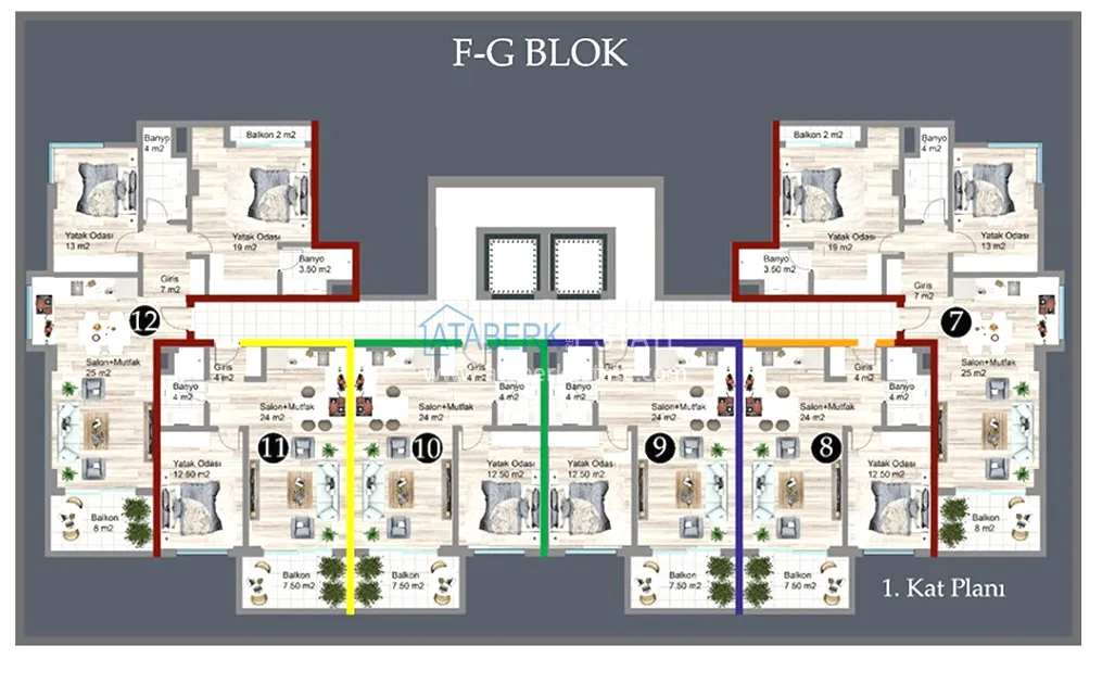 A new 2+1 apartment is for sale, combined from two 1+1 apartments. The total area is 105 m². The property is located on the 2nd floor (Turkish first). The layout includes: a spacious hall, a large kitchen, two bedrooms, two bathrooms and two small balconies. The apartment has a “Warm floor” system throughout the area, which adds comfort at any time of the year.