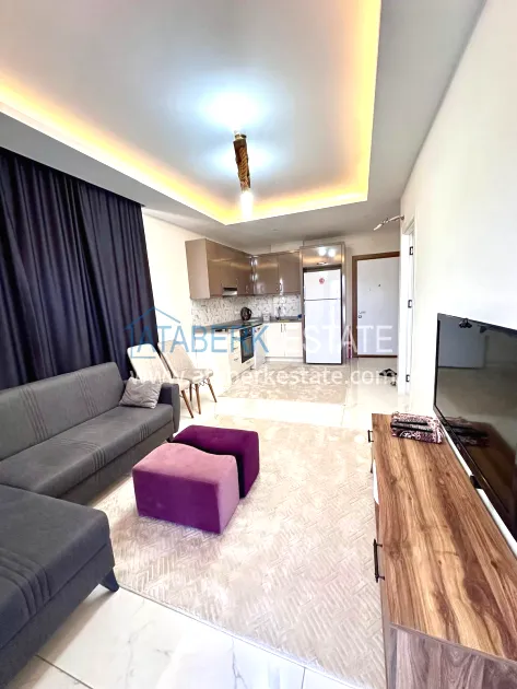 The proposed 1+1 apartment with an area of 50 m2 is located on the 4th floor. It is oriented to the south-west, with mountain views. The layout includes a living room with an American-style kitchen, a bedroom, a combined bathroom and a glazed balcony. The property is fully furnished. Everything is completely new - no one lived in the apartment.