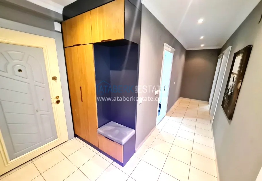 The 110 m² 2+1 apartment is located on the 2nd floor. The layout includes an entrance hall, a spacious living room with an American-style kitchen, two bedrooms, two bathrooms and two balconies, one of which is glazed. The apartment is offered with furniture and household appliances, is fully ready for living and is suitable for obtaining a residence permit.