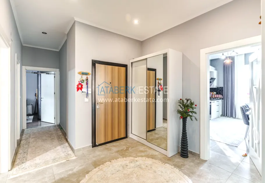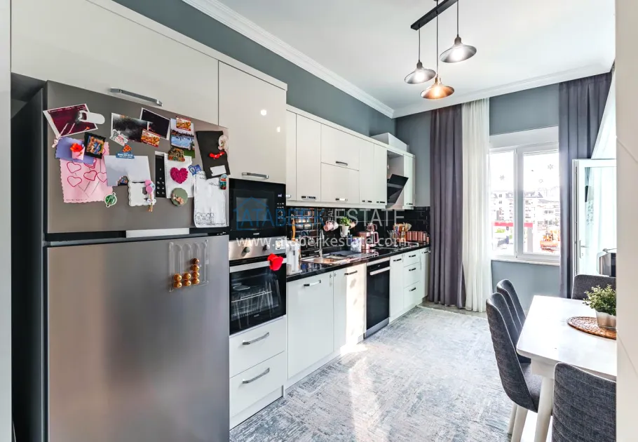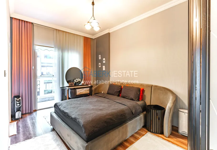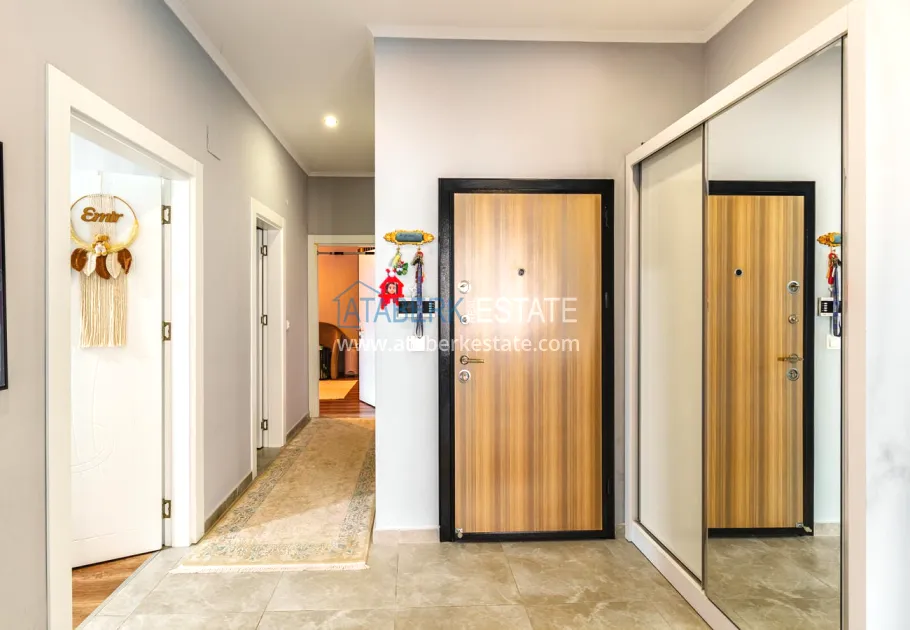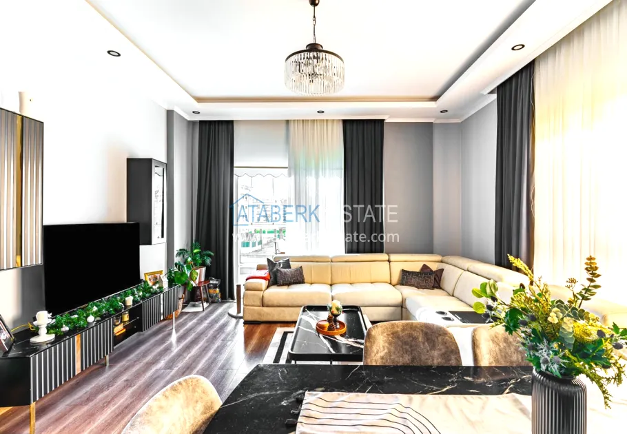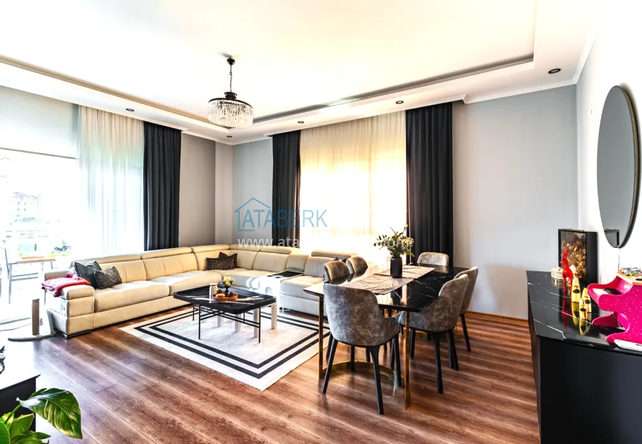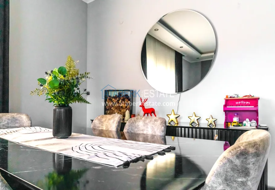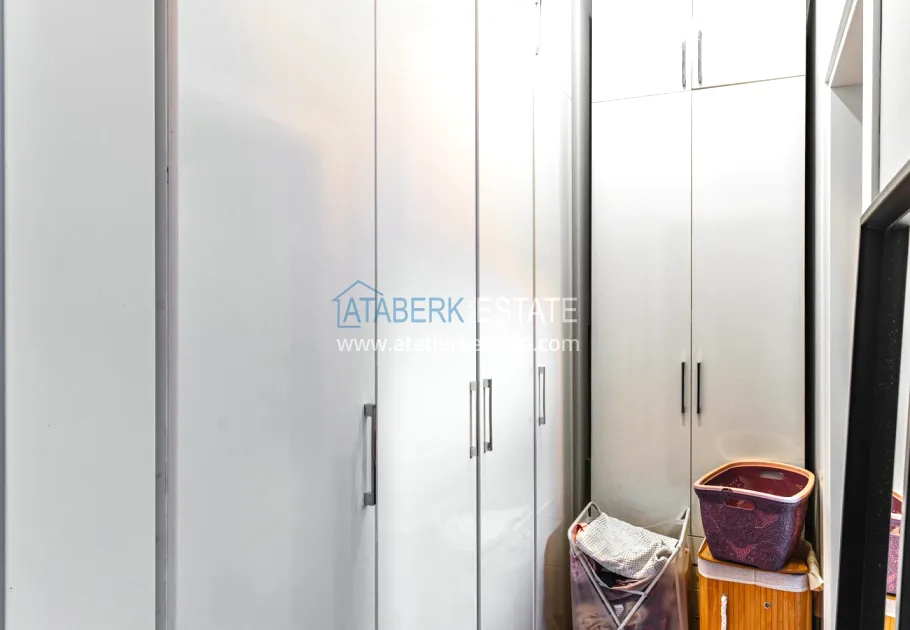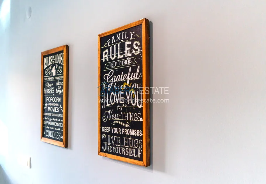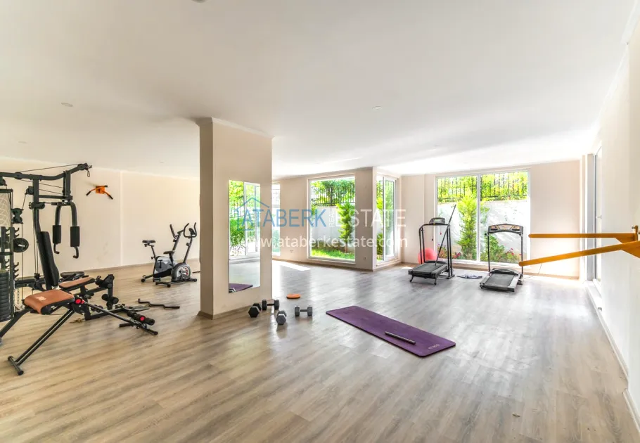 The 154 m² apartment has a 3+1 layout and has a linear (single-level) format. The layout includes a spacious entrance hall, a separate kitchen, a living room, three bedrooms, two bathrooms and two glazed balconies. The apartments are sold furnished, equipped with a natural gas system, and the windows offer a pleasant view of the complex.