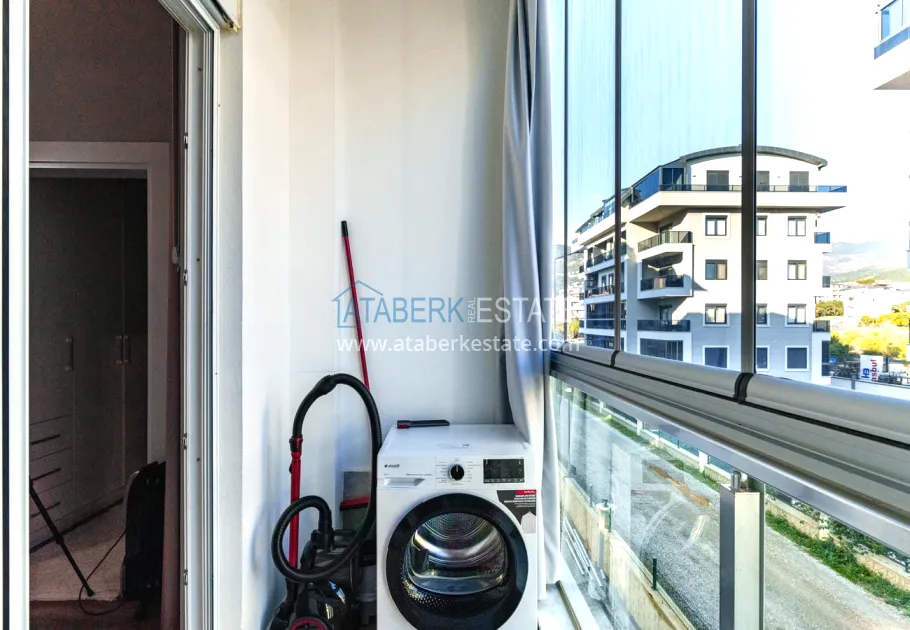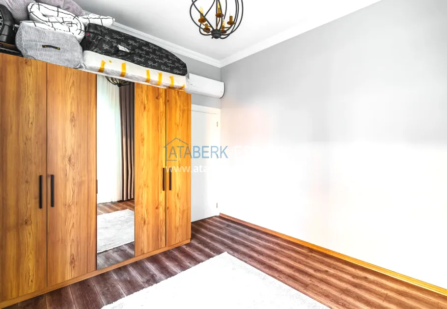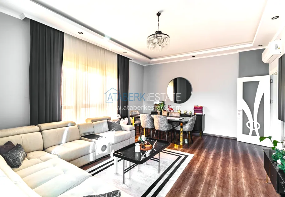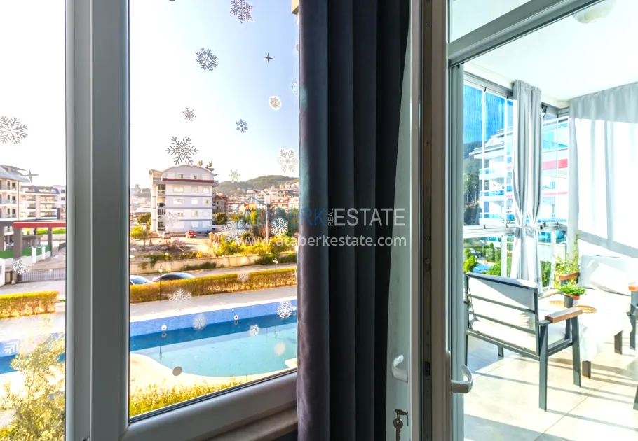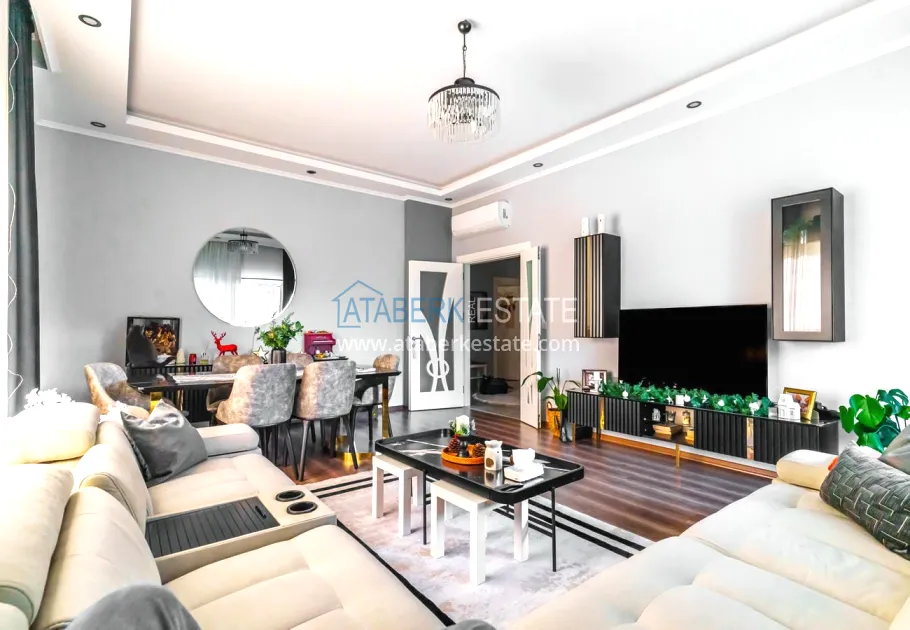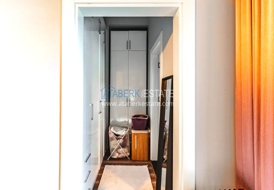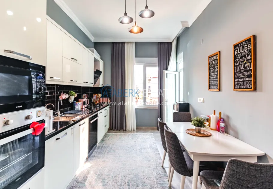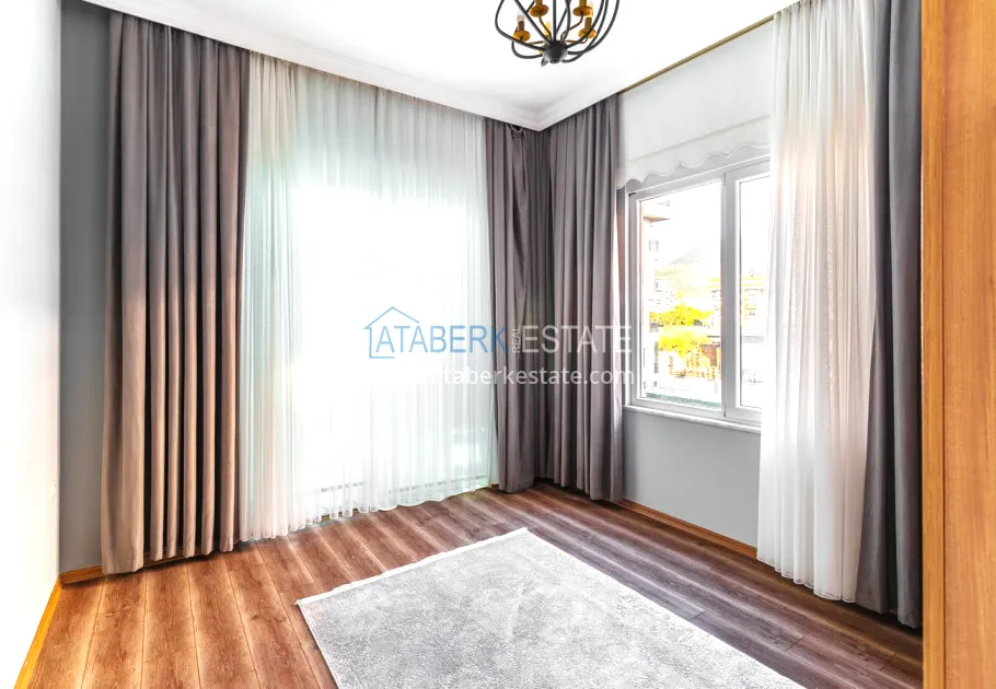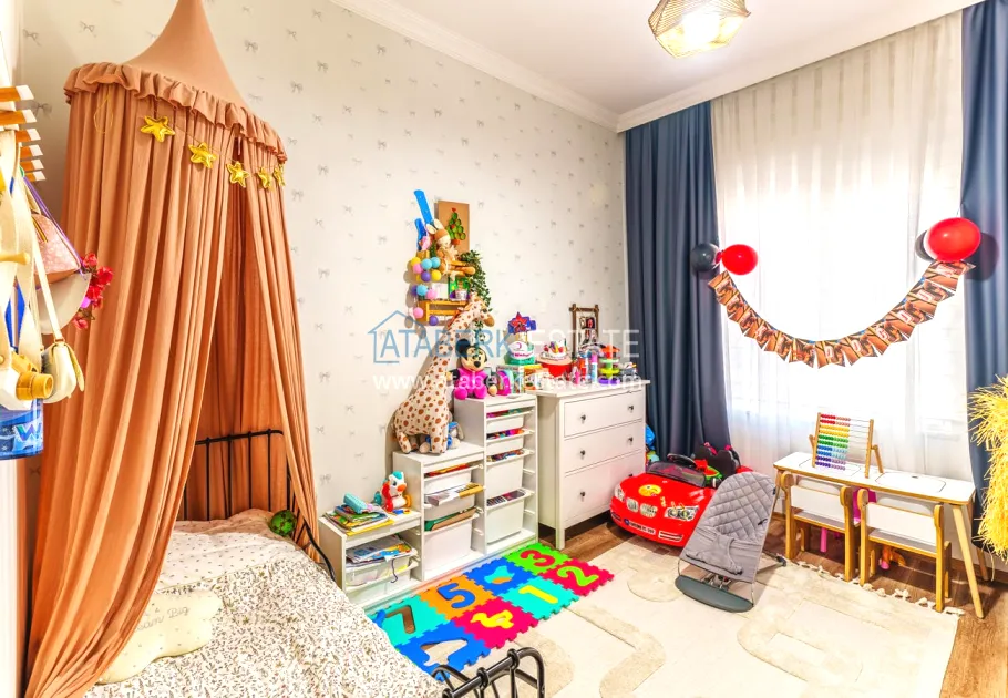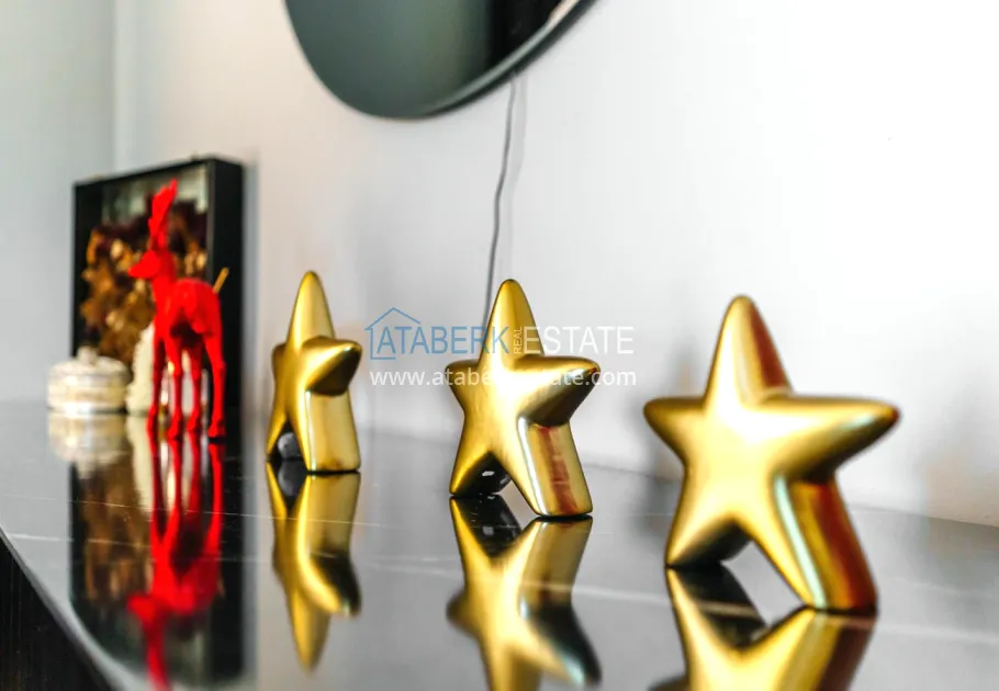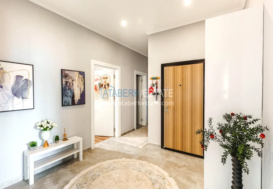 The 154 m² apartment has a 3+1 layout and has a linear (single-level) format. The layout includes a spacious entrance hall, a separate kitchen, a living room, three bedrooms, two bathrooms and two glazed balconies. The apartments are sold furnished, equipped with a natural gas system, and the windows offer a pleasant view of the complex.