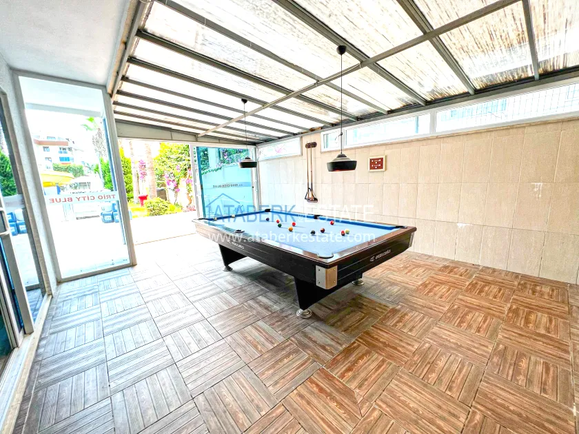 A one-bedroom 1+1 apartment with a total area of 70 m² is located on the first Turkish floor. The layout includes a living room with an open-plan kitchen, a bedroom, two bathrooms and a spacious balcony with a pleasant view of the complex - the pool. The apartment is south and west facing, which provides plenty of natural light throughout the day. The property is offered for sale furnished.
