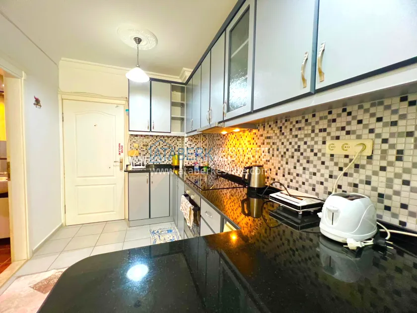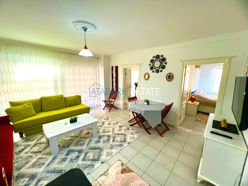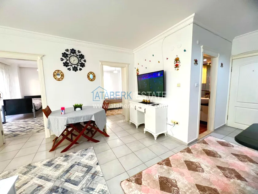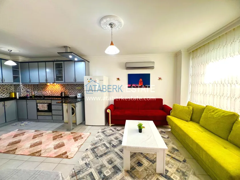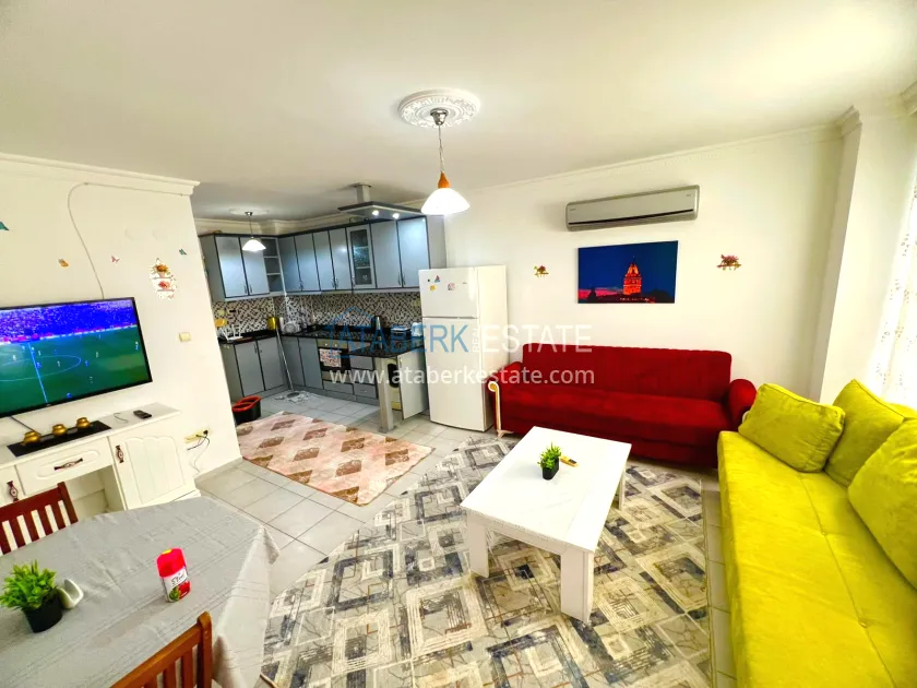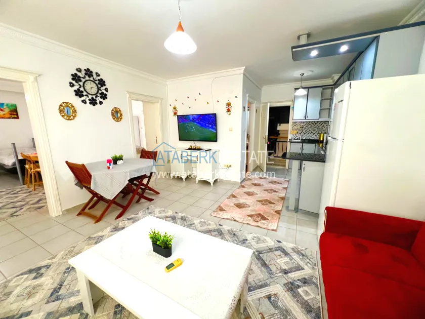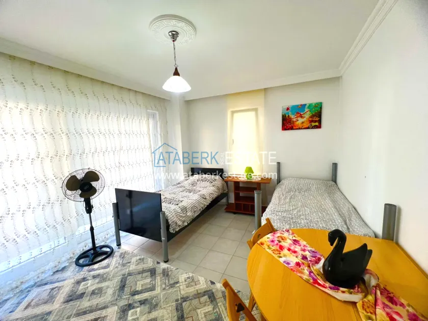 For sale is a spacious 2+1 apartment with a total area of 120 m², located on the ground floor. The interior space is well organized: a bright living room, an open-plan kitchen, two bedrooms, two bathrooms, a large balcony. The apartment is sold fully furnished and equipped with household appliances, which allows you to immediately use it for living or renting without additional investments. The format and size make the facility comfortable for both families and long-term stays by the sea.