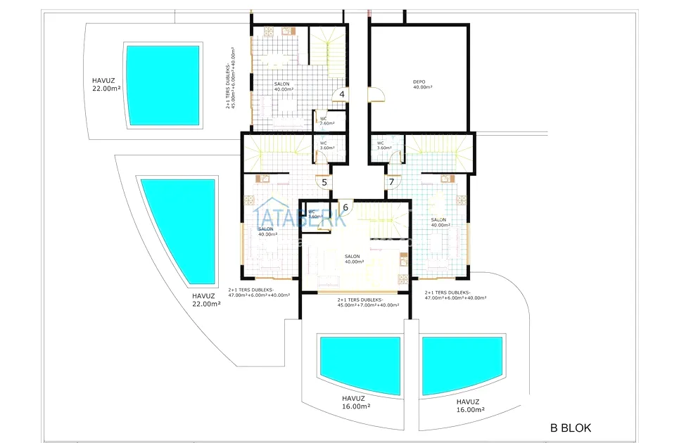 The complex offers various types of real estate: standard 1+1 apartments, two-level penthouses and garden duplexes with a 20 m²2+1 private pool. Due to the peculiarities of the landscape, almost all apartments, lounge areas and pools offer open views without the “window to window” effect