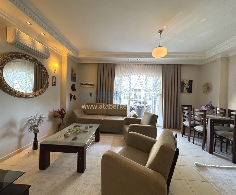 . The2+1 apartment with a total area of 100 m² is located on the 3rd floor and is sold furnished. The layout includes a living room, a kitchen, two bedrooms, a bathroom and two balconies, which makes the space particularly convenient for the family's everyday life