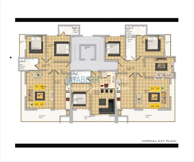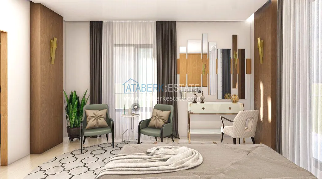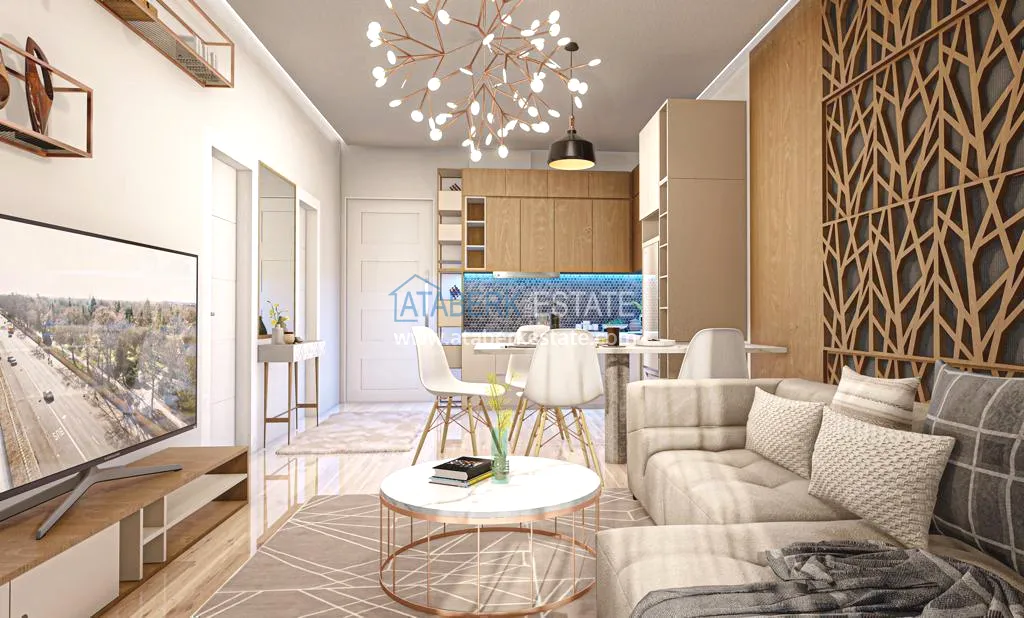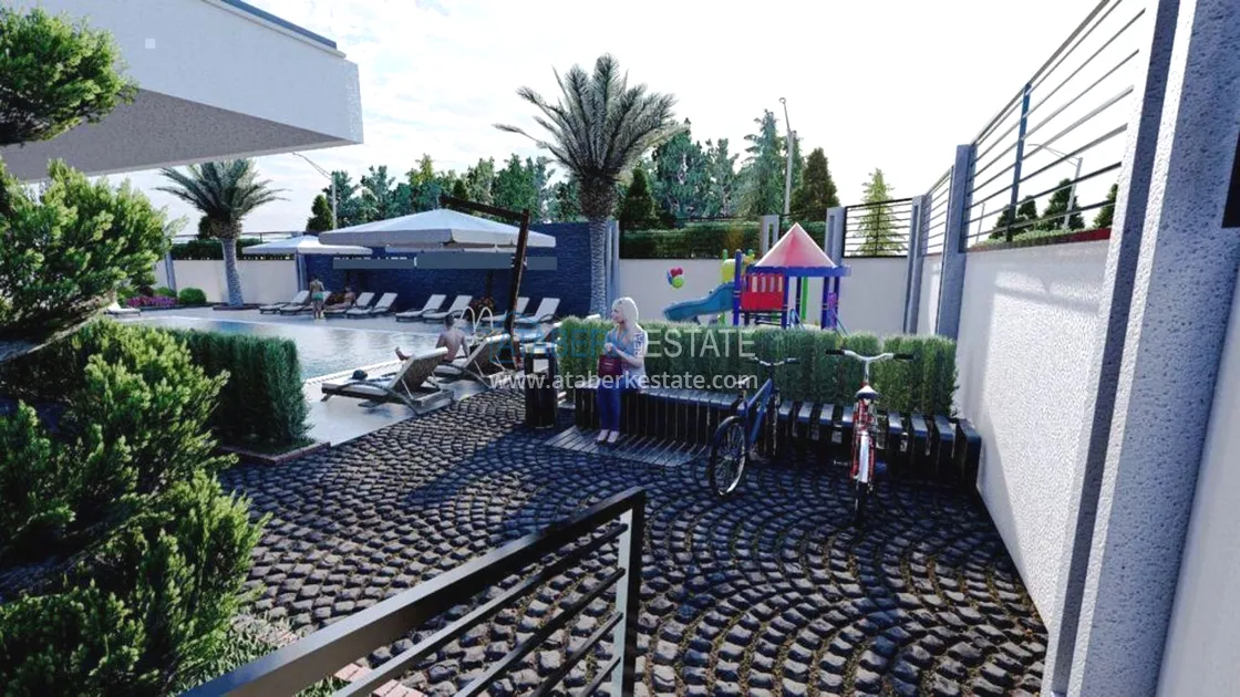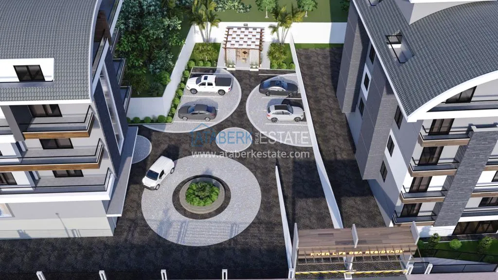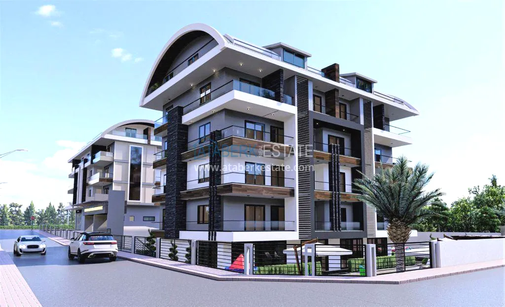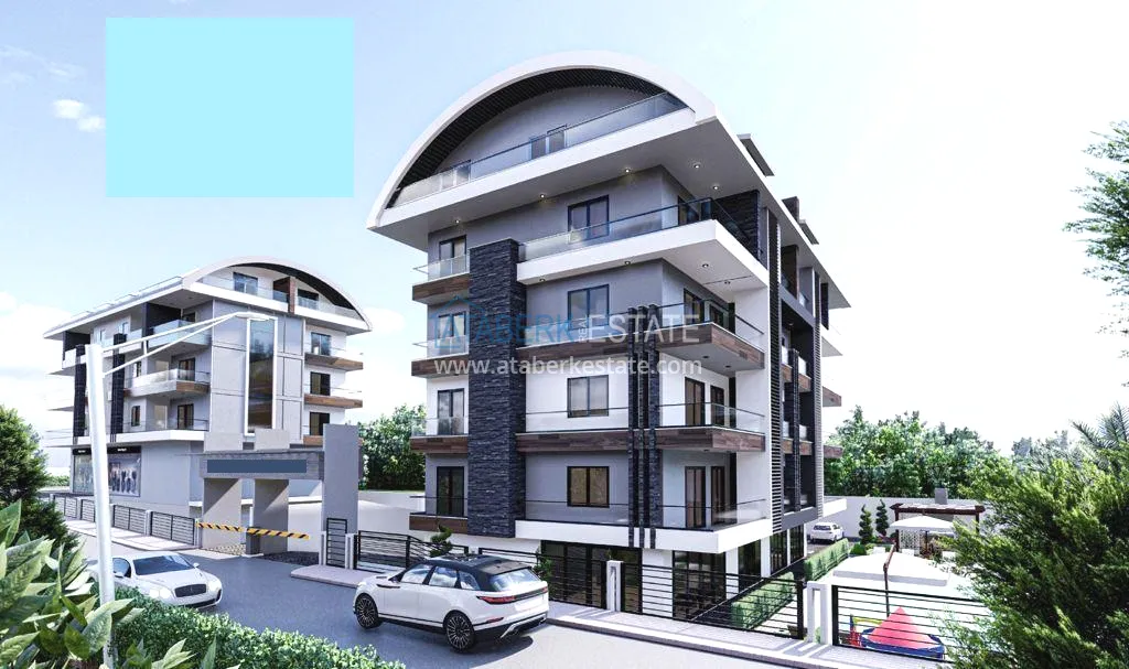 In the prestigious European district of Alanya, the construction of a cozy low-rise residence is in full swing. It will be located at some distance from the coastline closer to the mountains - the upper Oba. This part of the district is famous for its magical nature and clean mountain air, a friendly atmosphere reigns here, new buildings predominate and the urban infrastructure is well developed, and transport accessibility is excellent. The road to the sea will take no more than 15 minutes drive (2 km). About 500 m to the city center.