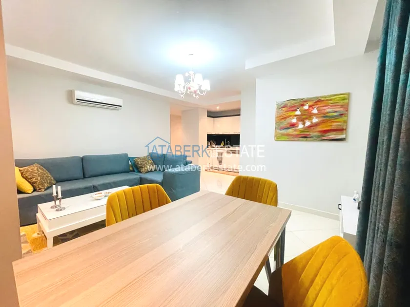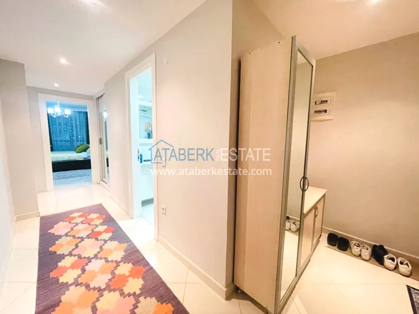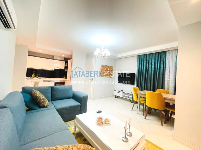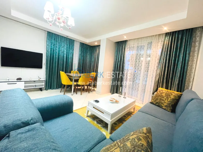 The apartment we offer is compact and cozy with a modern interior. Layout 2+1 total area is 110 m2 - living room, American kitchen, two bedrooms, bathroom and balcony. The first floor is high, north-west side. The price includes all furniture and household appliances, everything is as in the photo.